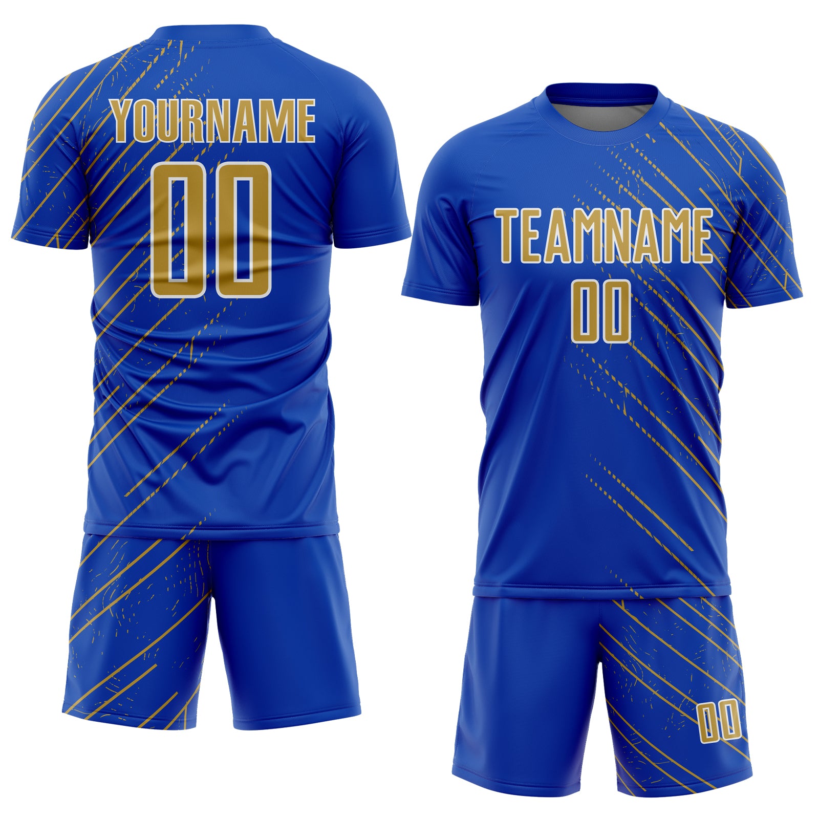 Custom Thunder Blue Old Gold-White Lines Sports Sublimation Soccer Uniform Jersey