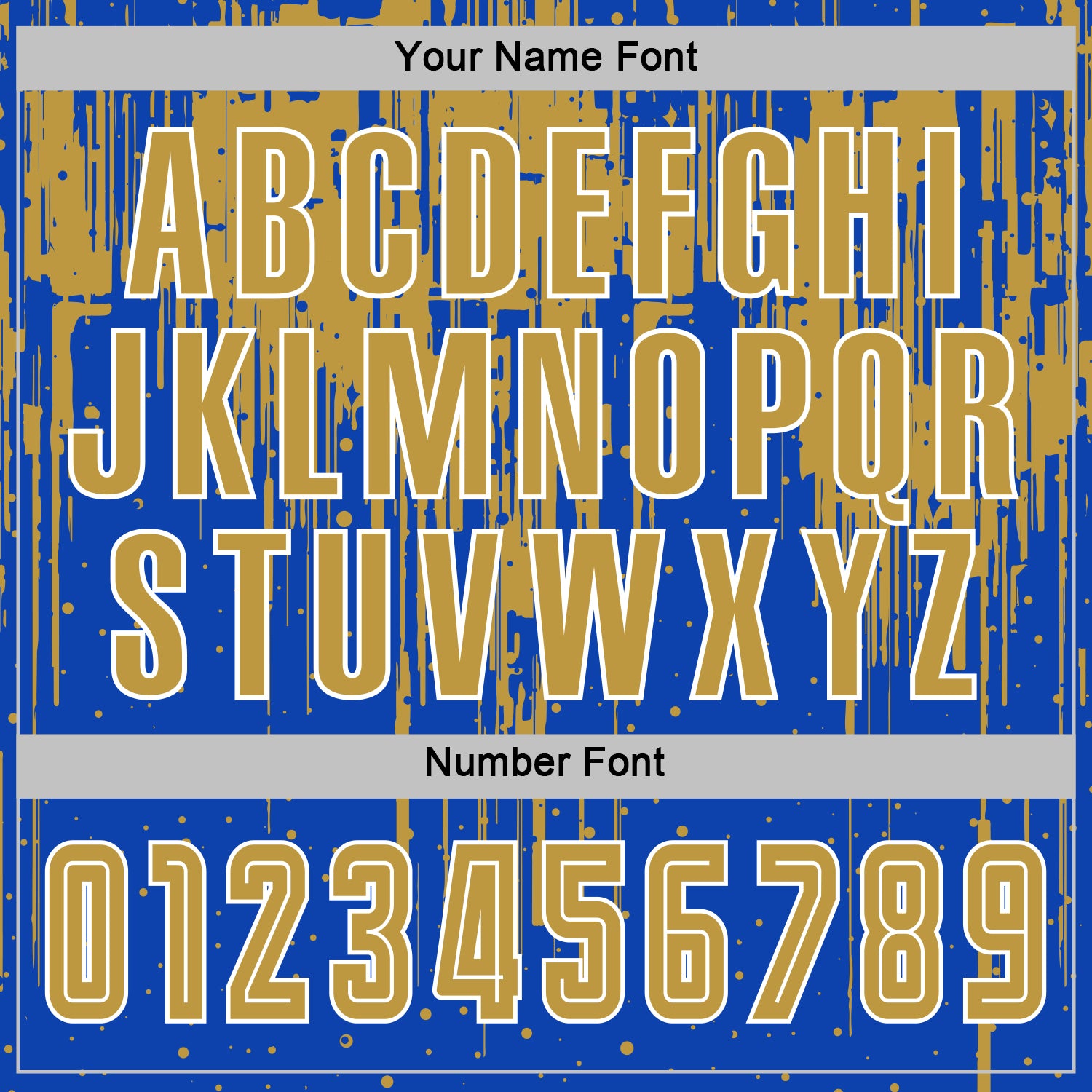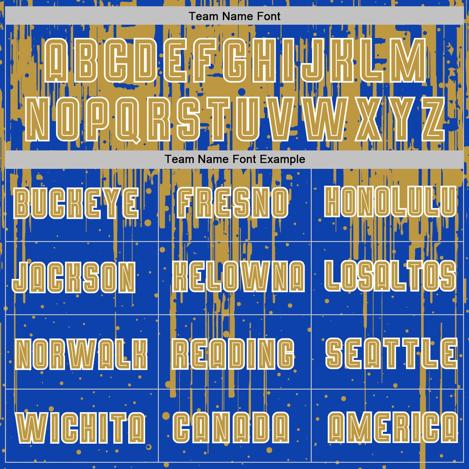 Custom Thunder Blue Old Gold-White Dripping Splatte Pattern Sports Sublimation Soccer Uniform Jersey
