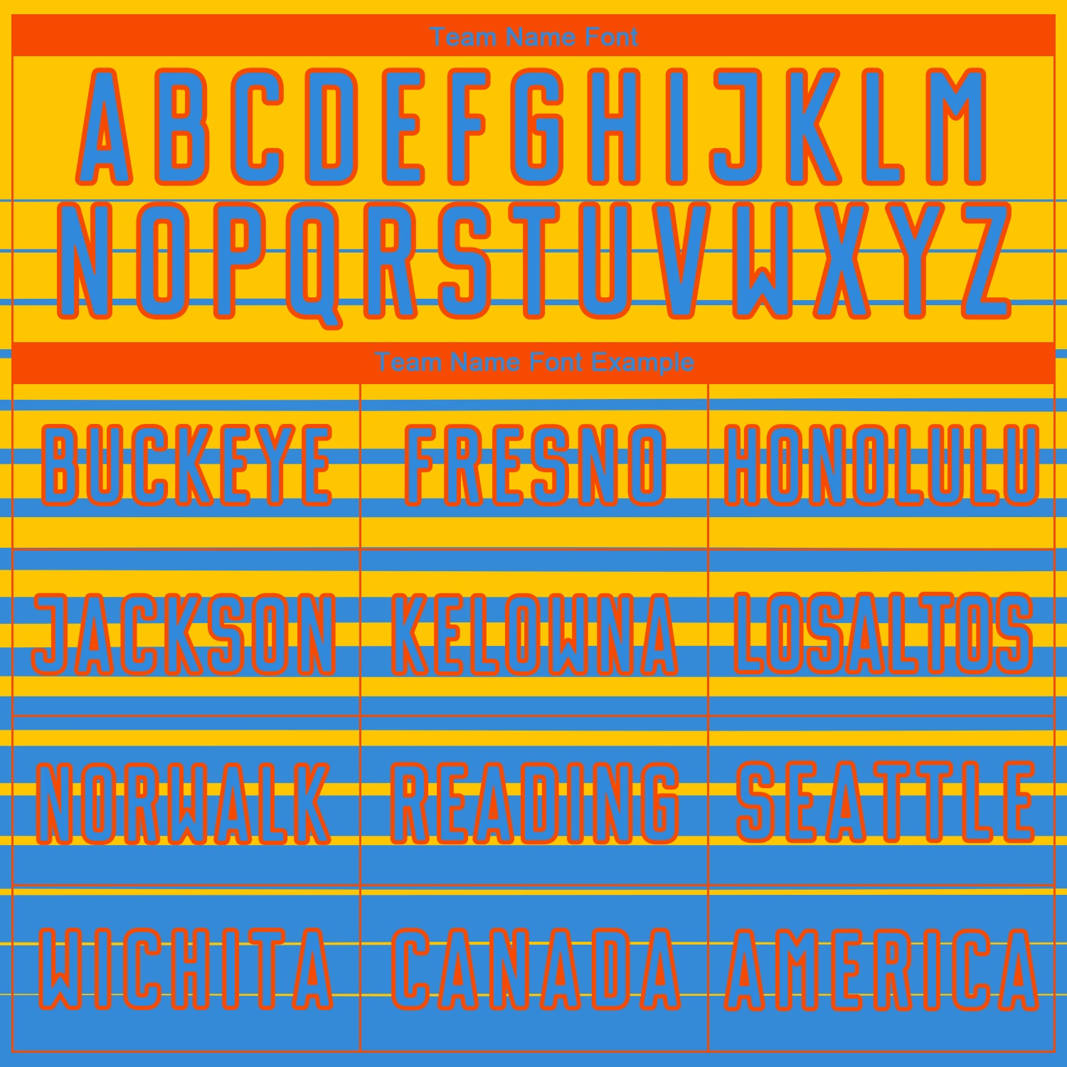 Custom Yellow Powder Blue-Orange Gradient Pinstripe Sublimation Soccer Uniform Jersey