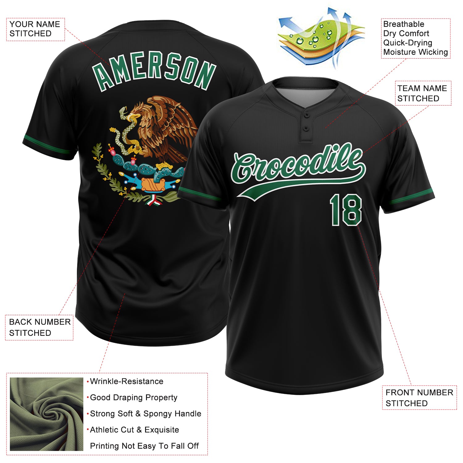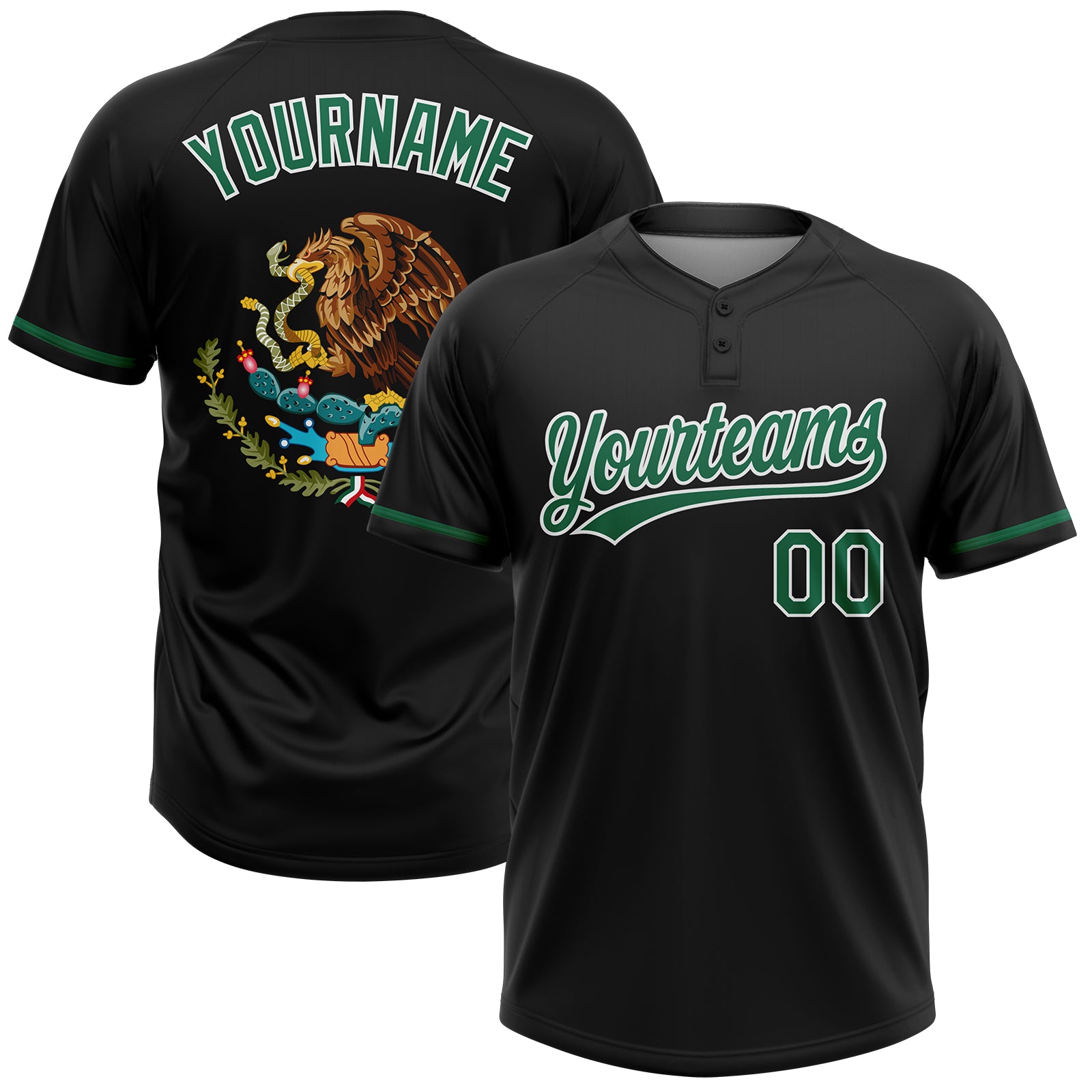 Custom Black Kelly Green-White Mexico Two-Button Unisex Softball Jersey