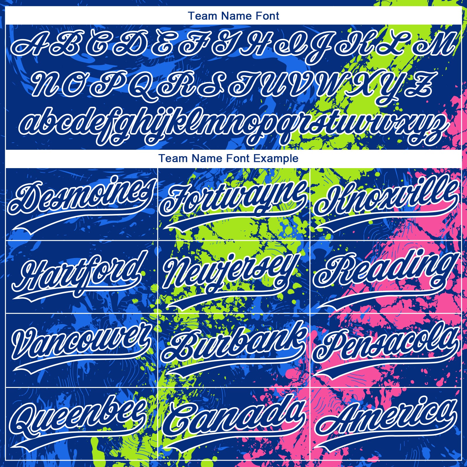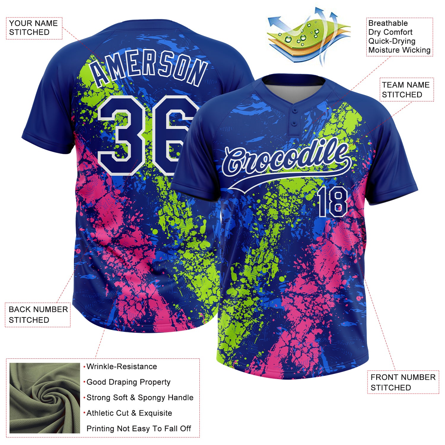 Custom Royal Neon Green Pink-White Dripping Splatter Cracked Texture Two-Button Unisex Softball Jersey