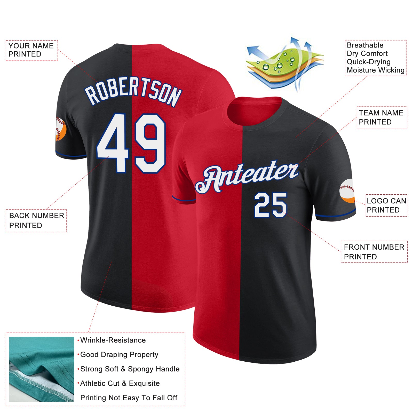 Custom Black Red-Royal Split Fashion Performance T-Shirt
