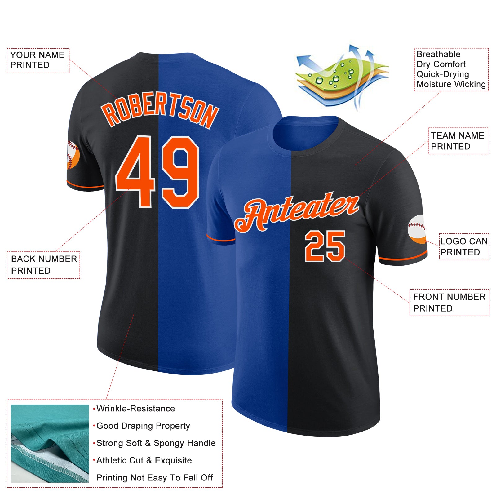 Custom Black Orange-Royal Split Fashion Performance T-Shirt