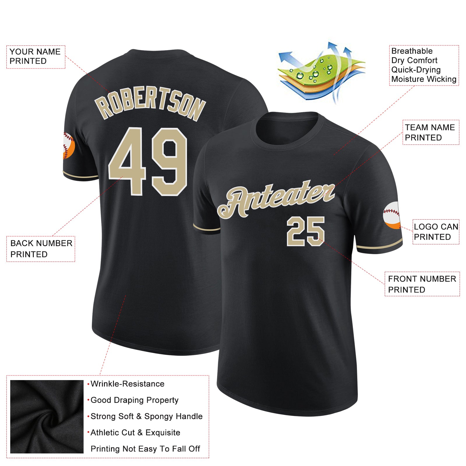 2. T-shirt with printed name and numbers