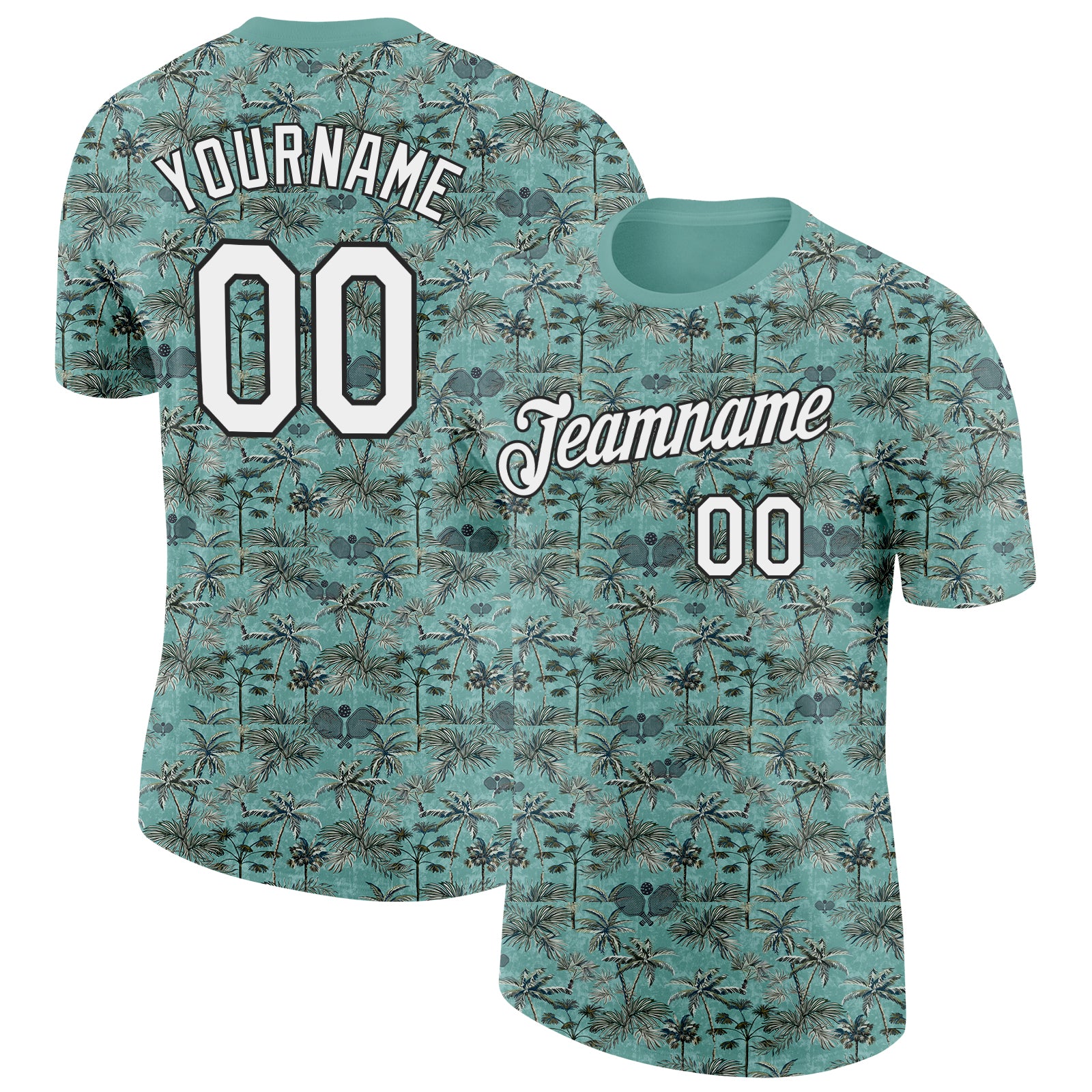 Custom Green White-Black 3D Pickleball Paddles Balls Tropical Palm Trees Performance T-Shirt
