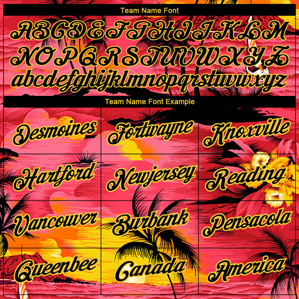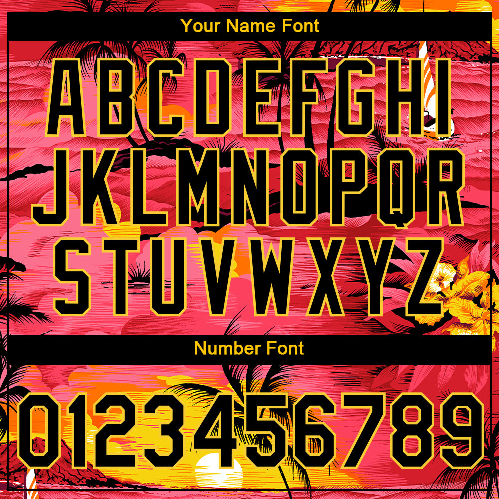 Custom Red Black-Gold 3D Pattern Design Sun Beach Hawaii Palm Trees Performance T-Shirt