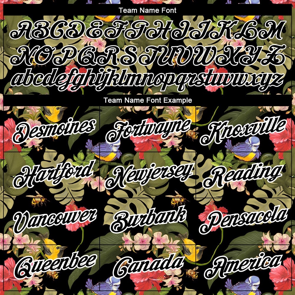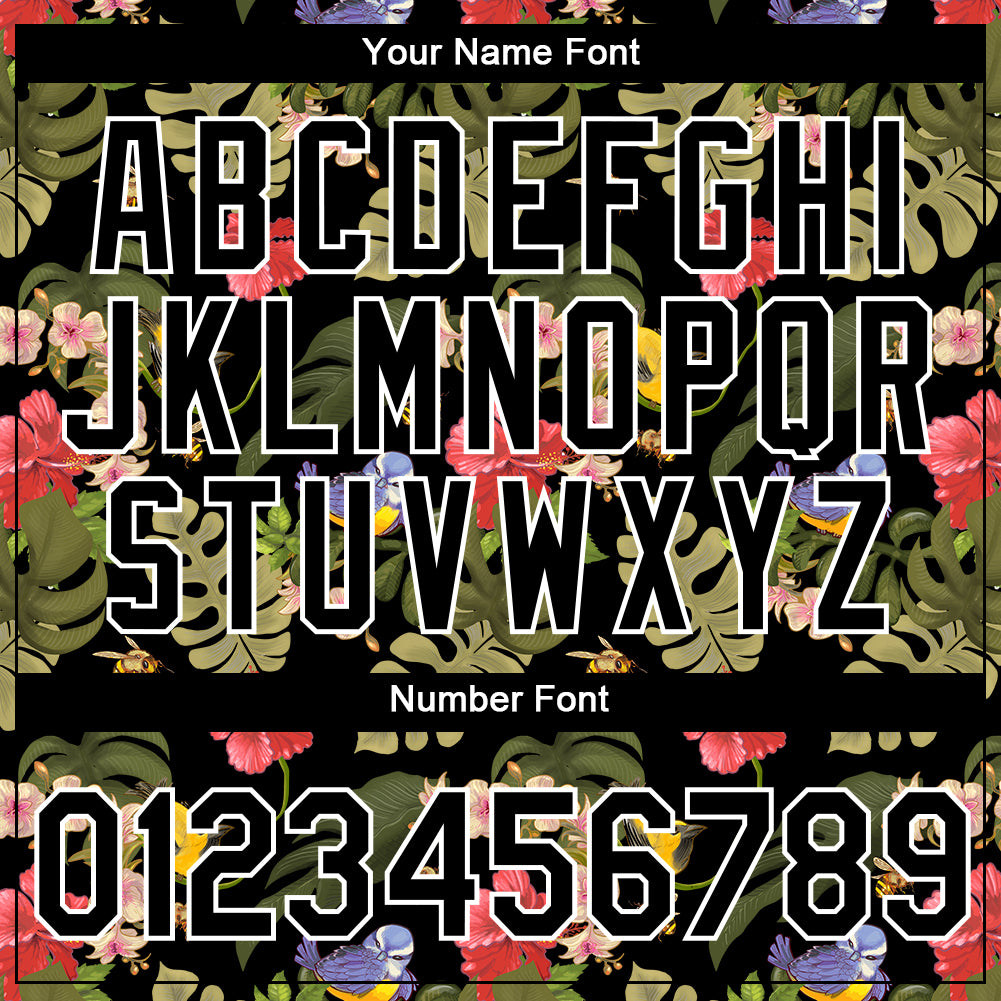 Custom Black White 3D Pattern Design Tropical Hawaii Plant With Bird Performance T-Shirt