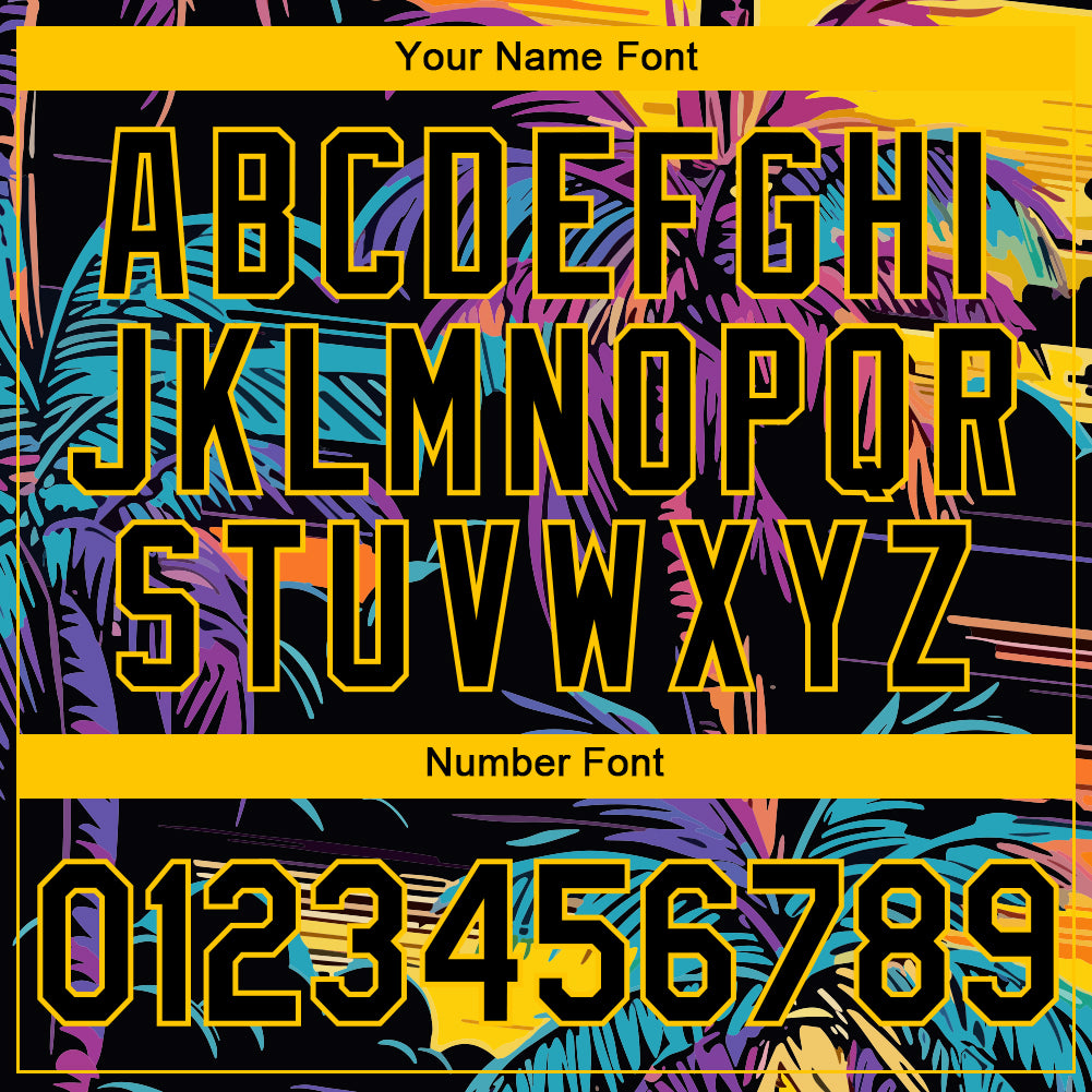 Custom Black Yellow 3D Pattern Design Tropical Hawaii Palms Trees Performance T-Shirt