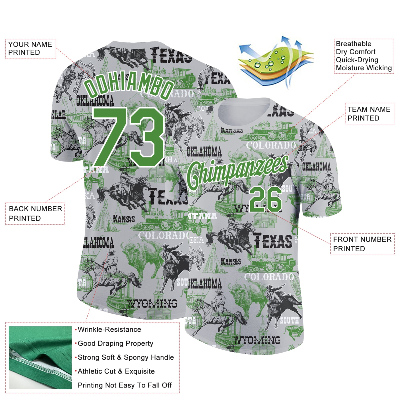 Custom White Aurora Green 3D Pattern Design Cowboy Rodeo Performance T-Shirt