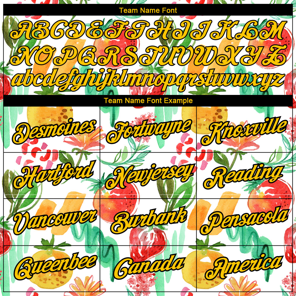 Custom White Gold-Black 3D Pattern Design Summer Holiday Fruit Performance T-Shirt