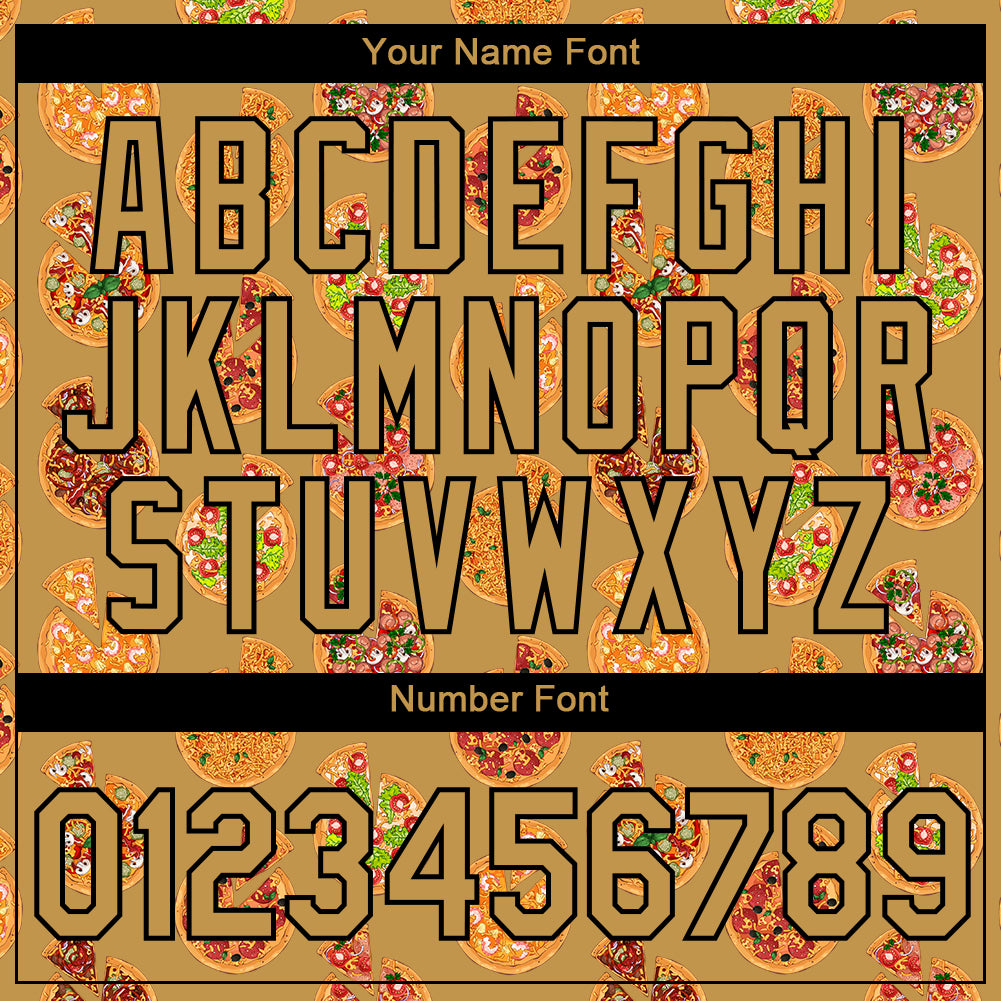 Custom Old Gold Black 3D Pattern Design Food Pizza Performance T-Shirt