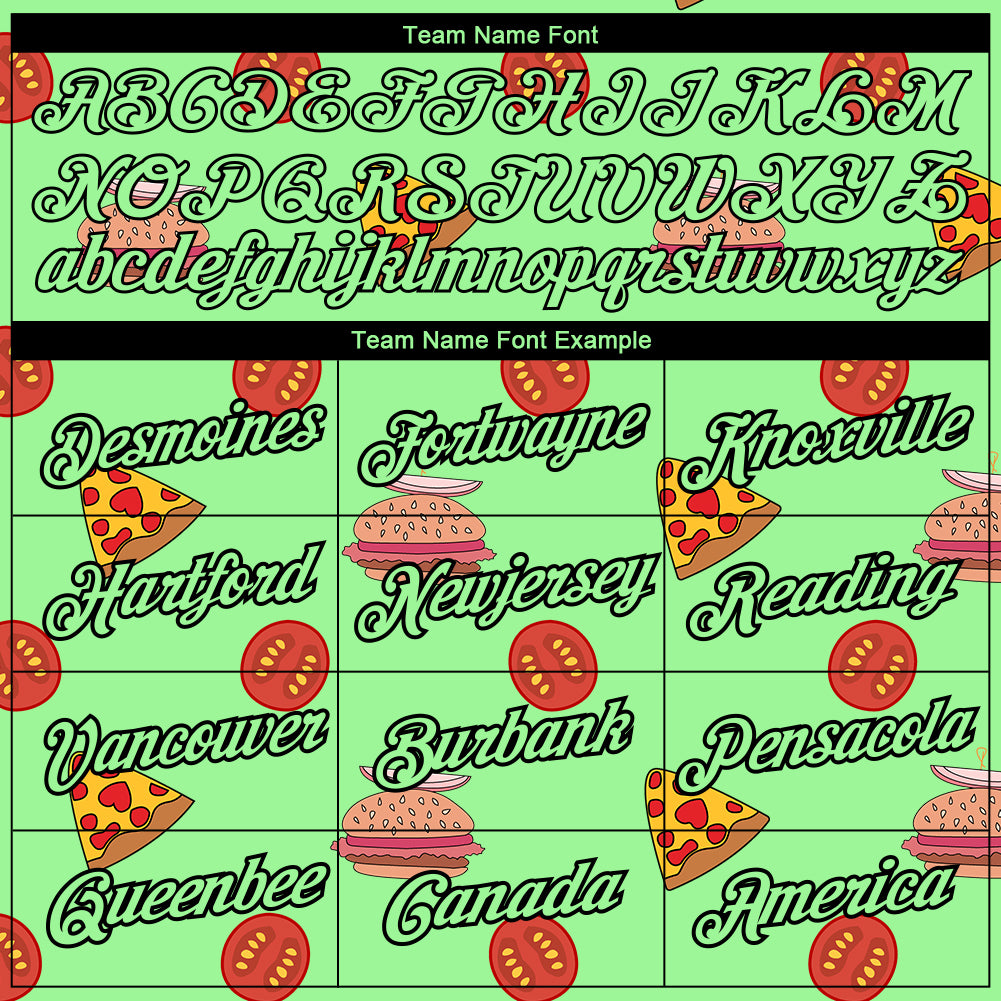 Custom Pea Green Black 3D Pattern Design Food Pizza And Burger Performance T-Shirt