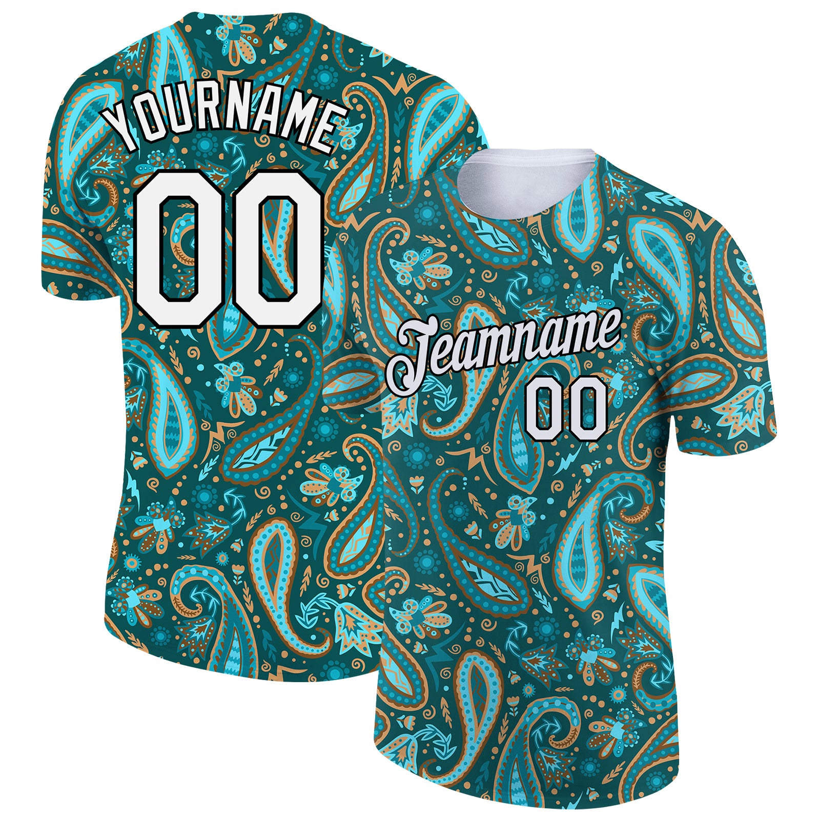 Custom Green White-Black 3D Pattern Floral Design Performance T-Shirt
