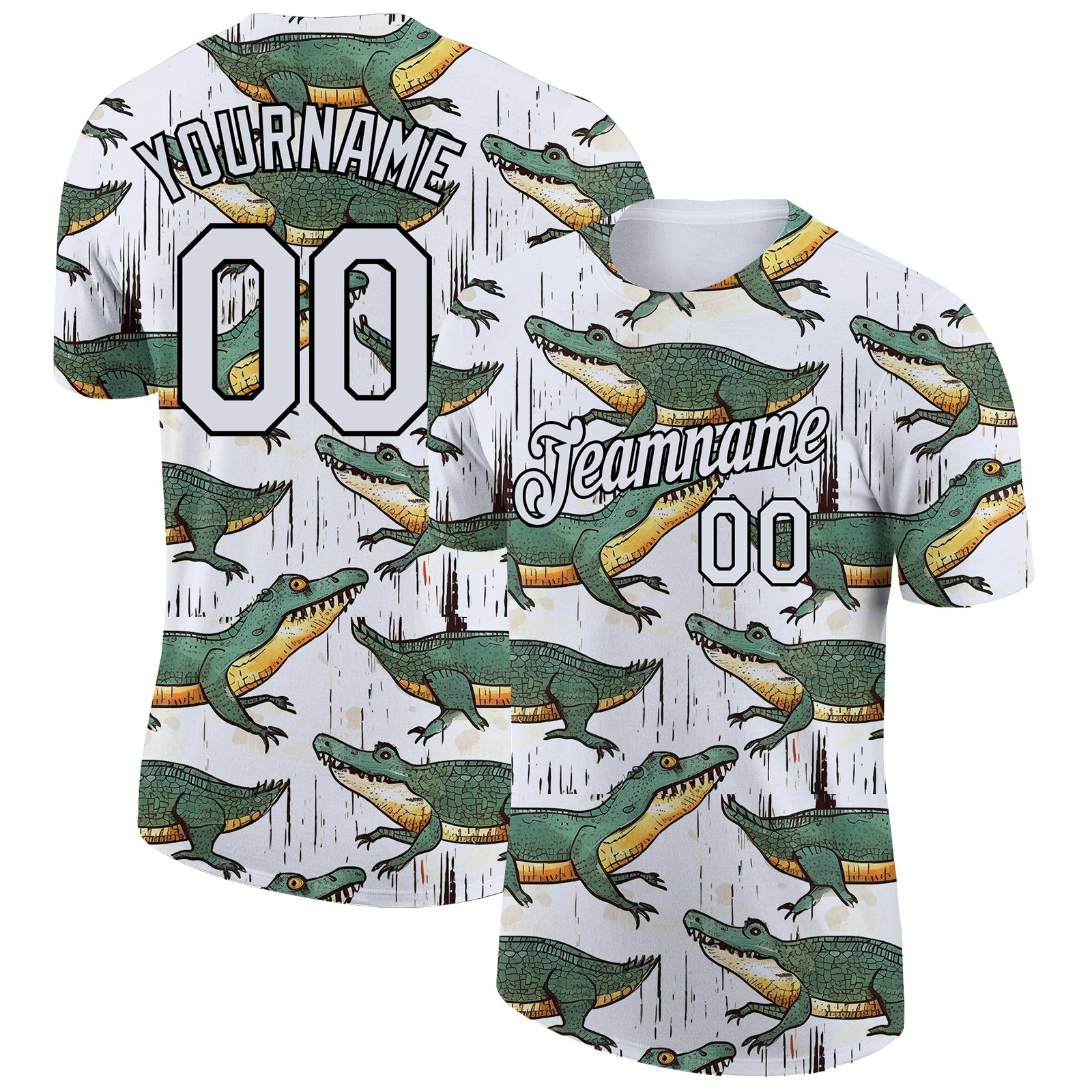 Custom White Black 3D Pattern Design Crocodile Performance T-Shirt
