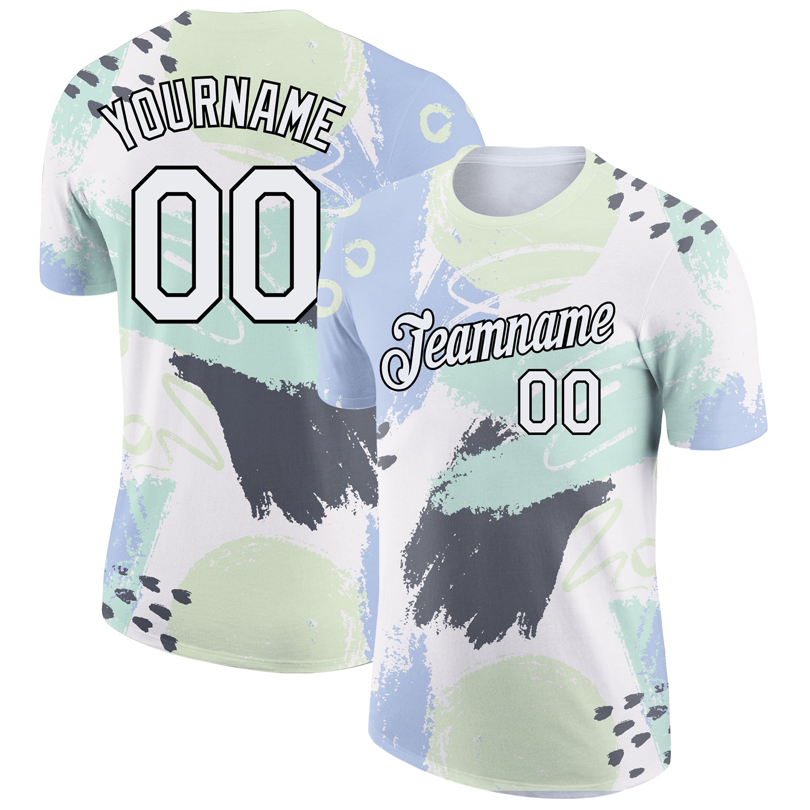 Custom White Black 3D Pattern Design Abstract Doodle Performance T-Shirt