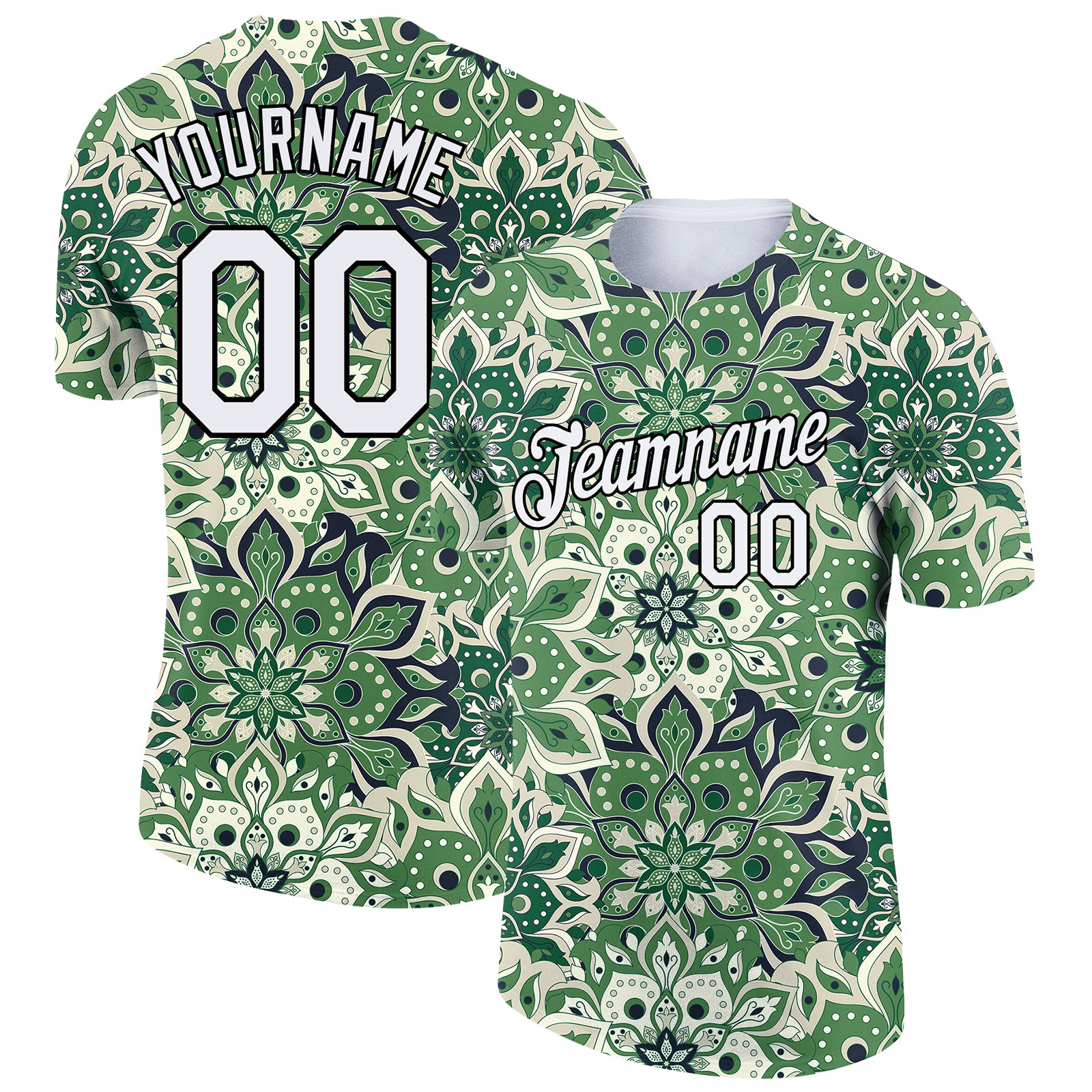 Custom White Black 3D Pattern Floral Design Performance T-Shirt