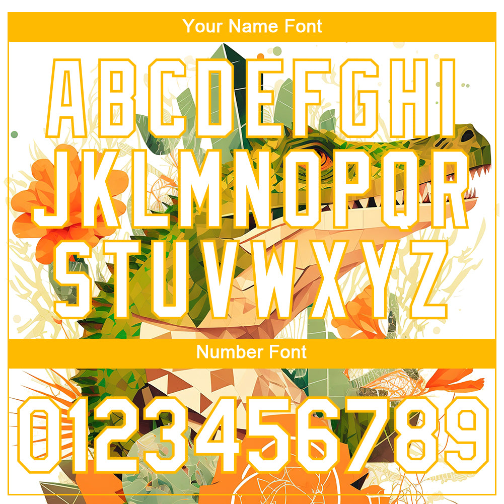 Custom White Gold 3D Pattern Design Crocodile Performance T-Shirt