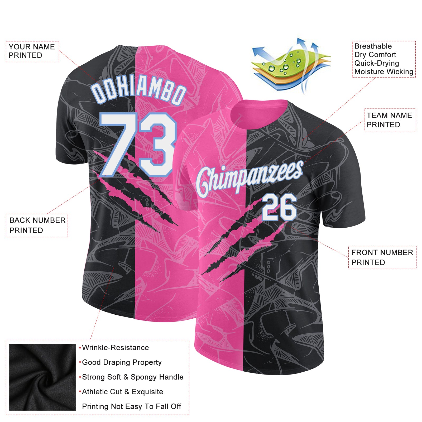 Custom Graffiti Pattern White-Light Blue 3D Performance T-Shirt