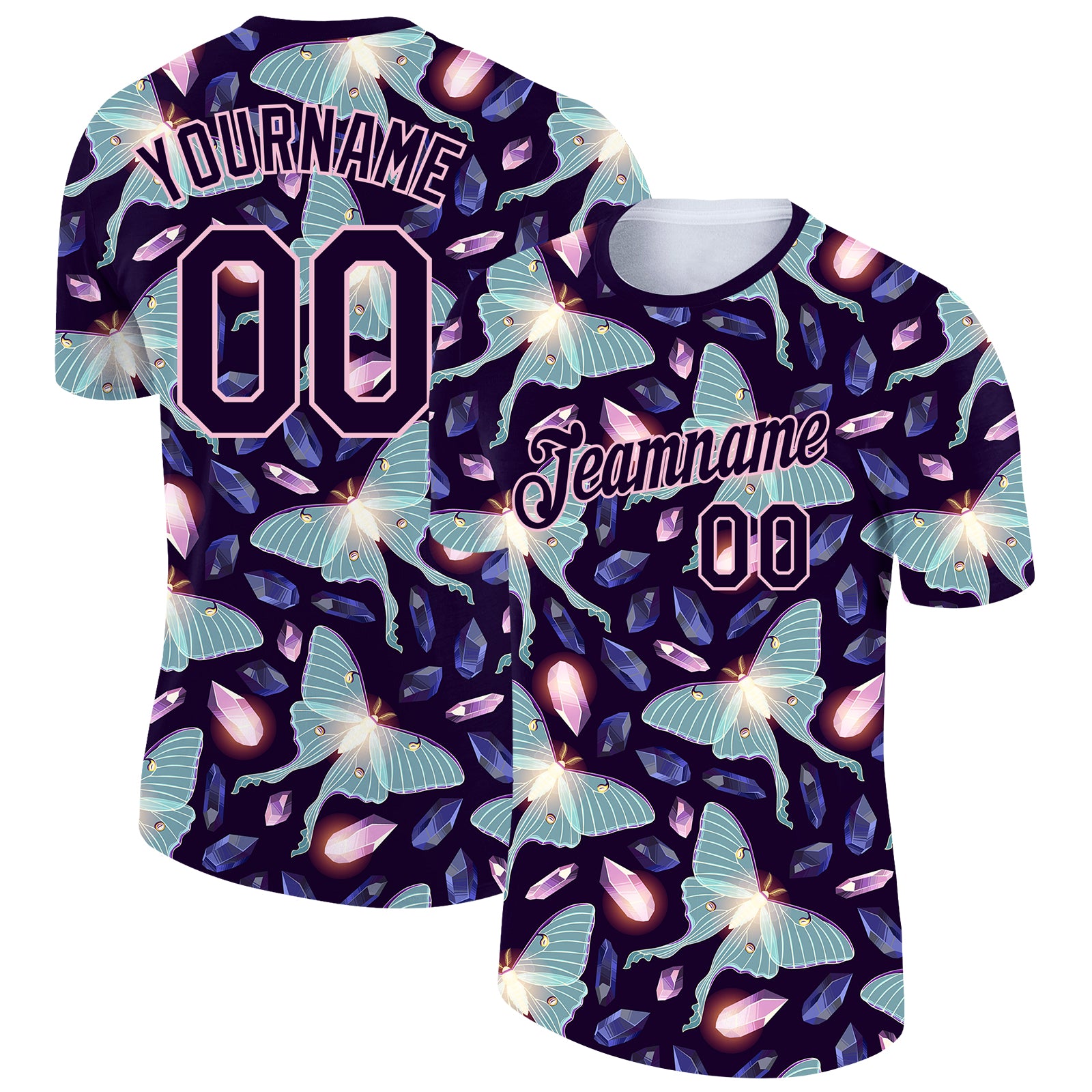 Custom Dark Purple Light Pink 3D Pattern Design Butterfly Performance T-Shirt