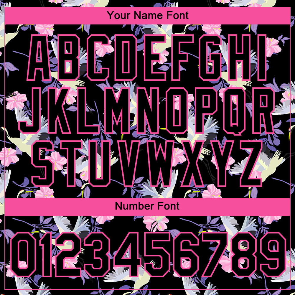 Custom Black Pink 3D Pattern Design Flowers And Crane Performance T-Shirt