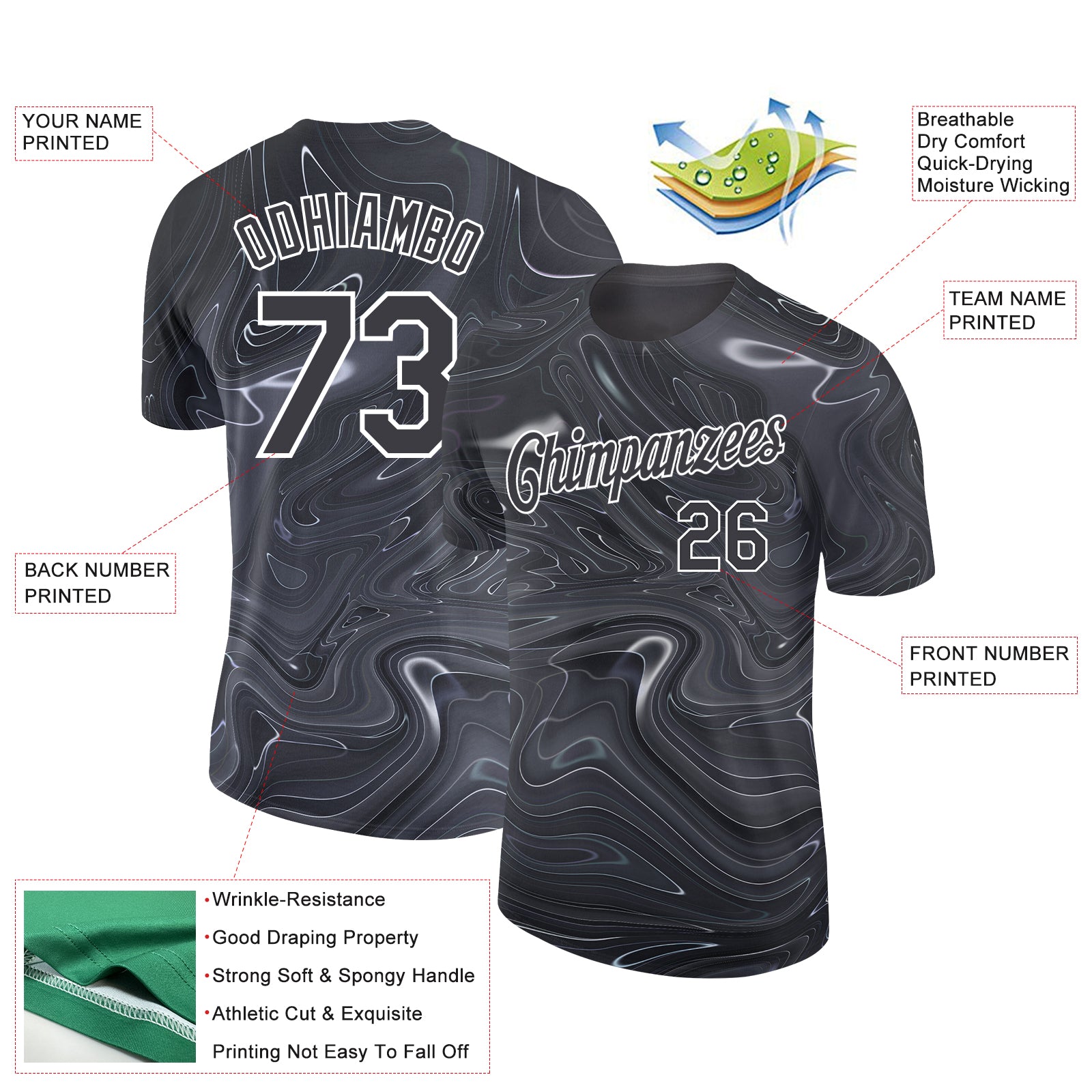 Custom Black White 3D Pattern Design Abstract Liquid Marbling Fluid Art Performance T-Shirt