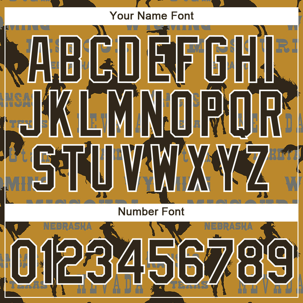 Custom Old Gold Black-White 3D Pattern Design Cowboy Rodeo Performance T-Shirt