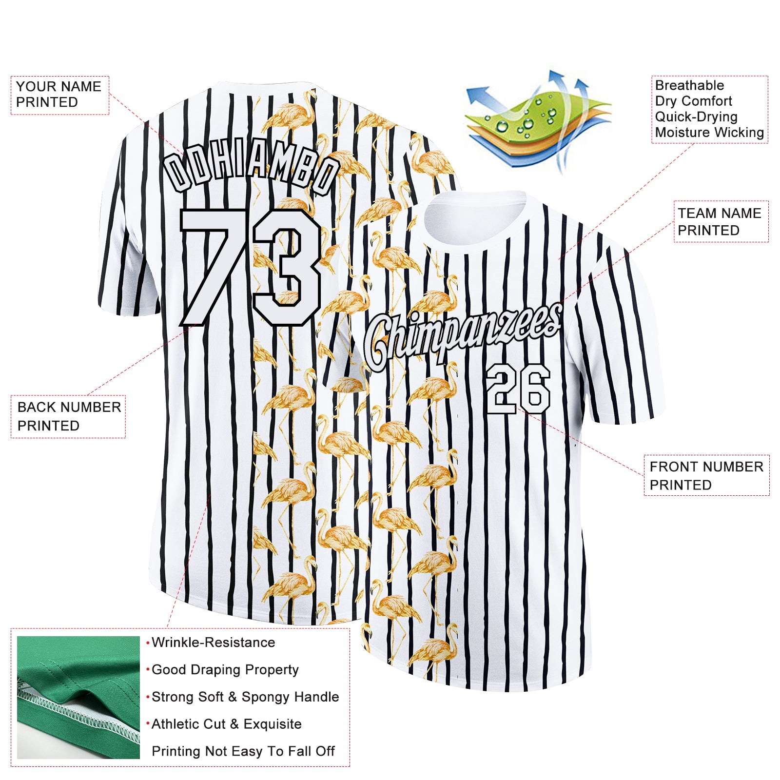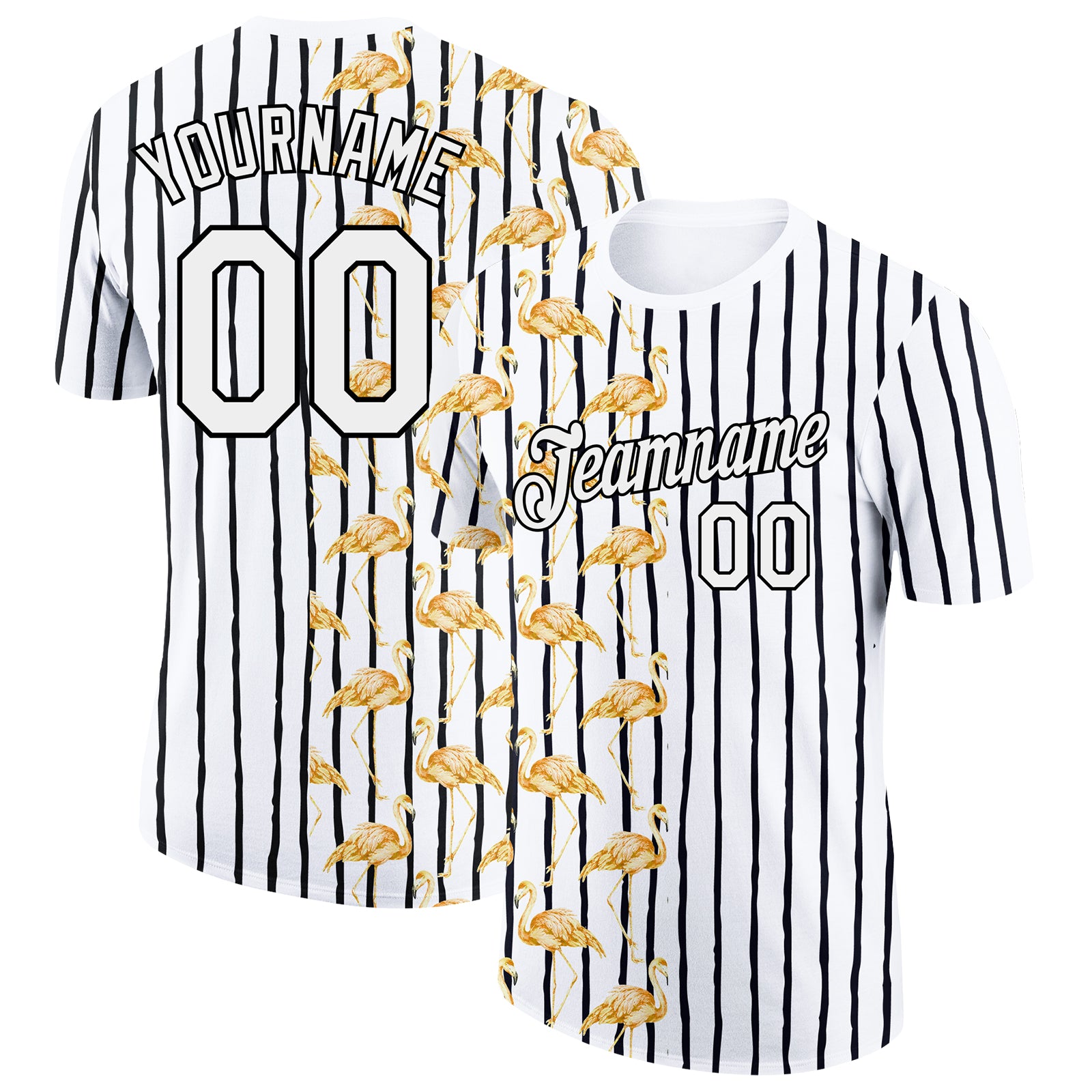 Custom Black White 3D Pattern Design Animal Flamingo Performance T-Shirt