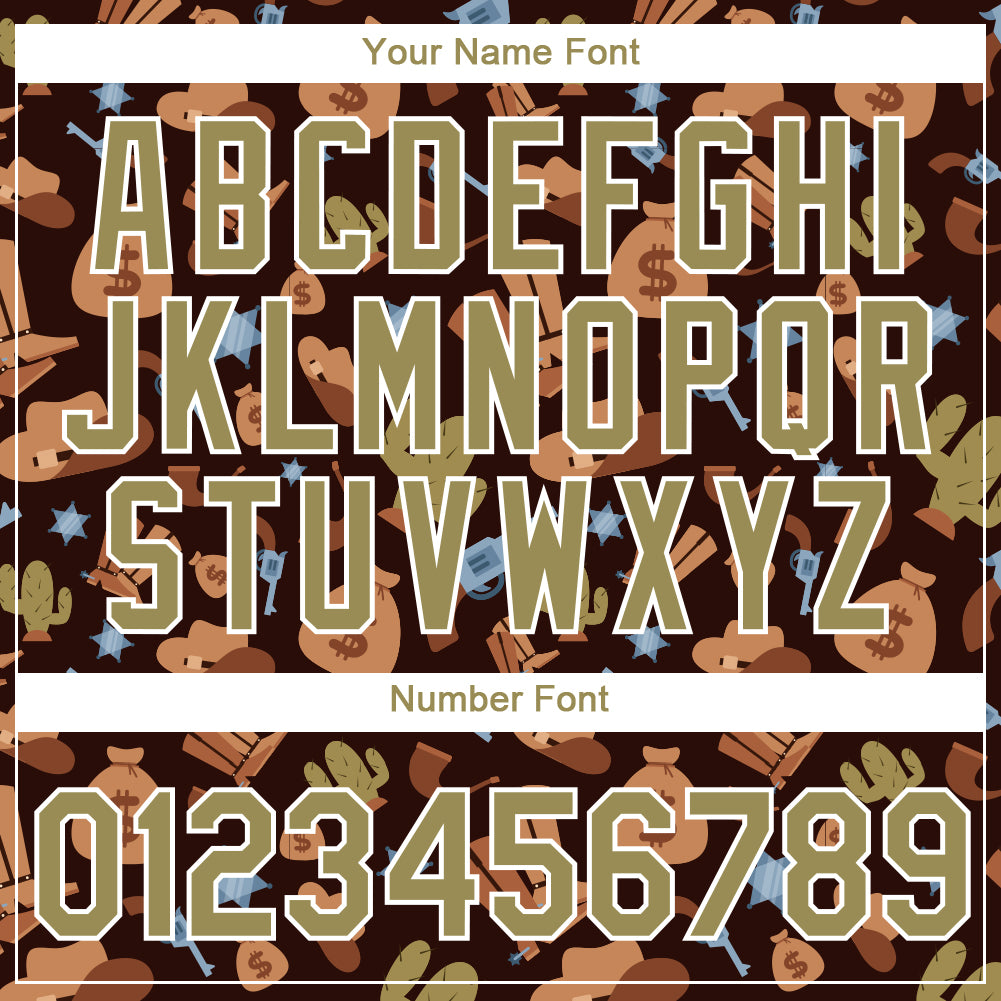 Custom Brown Vegas Gold-White 3D Pattern Design Cowboy Accessory Performance T-Shirt