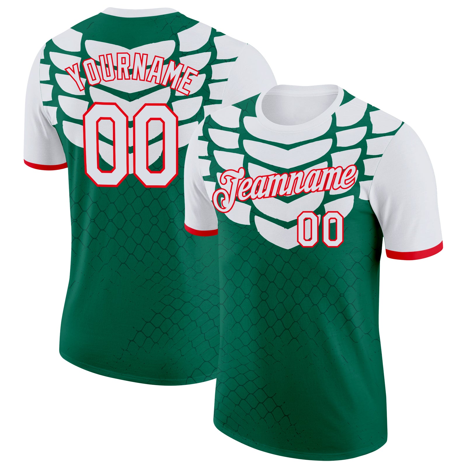 Custom Kelly Green White-Fire Red Mexico Snake Python Print Performance T-Shirt