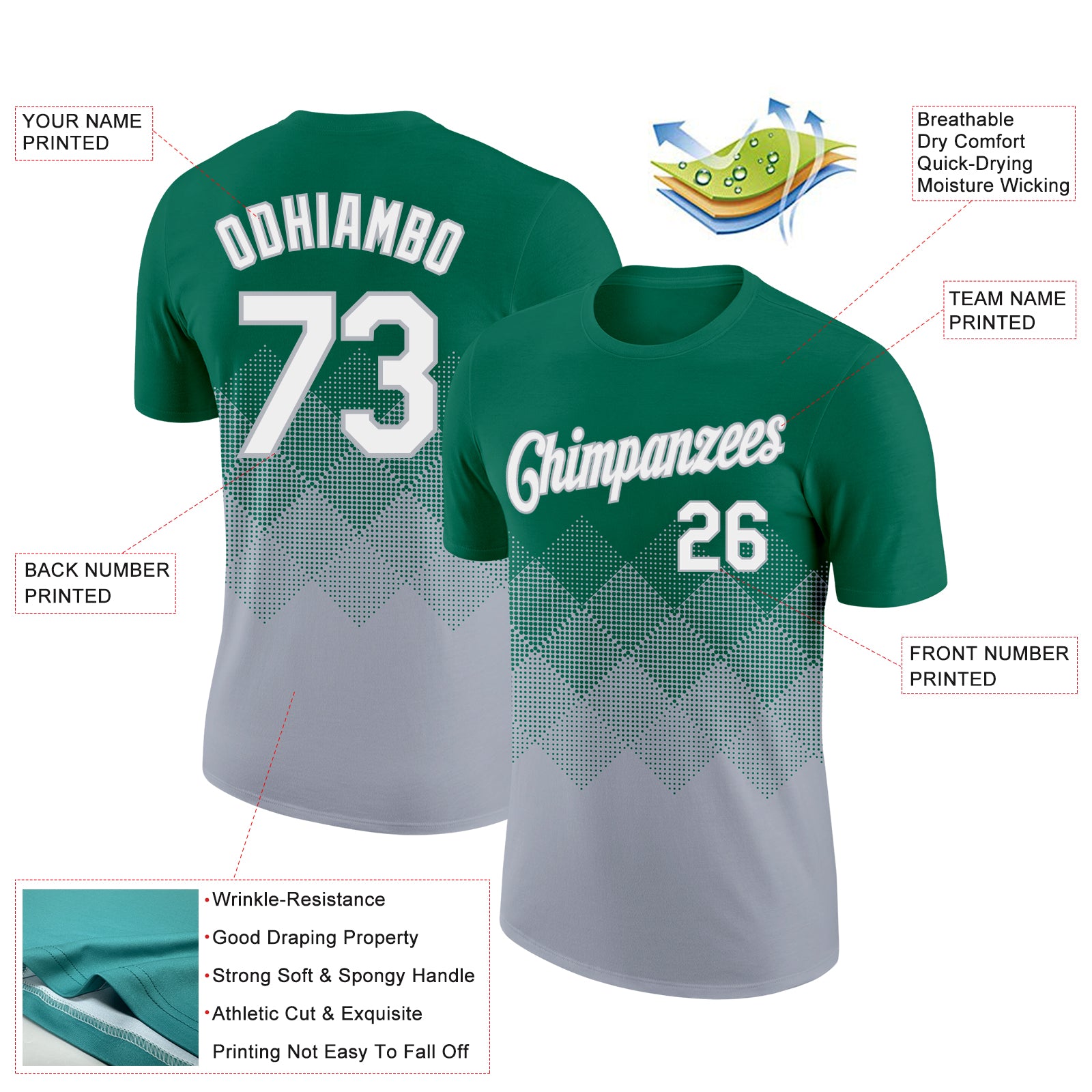 Custom Kelly Green White-Gray 3D Pattern Design Gradient Square Shapes Performance T-Shirt