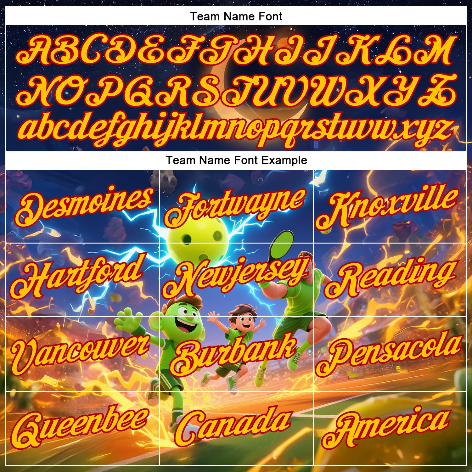 Custom Navy Yellow-Red 3D Charged Happy Family Pickleball Paddles Balls Performance T-Shirt