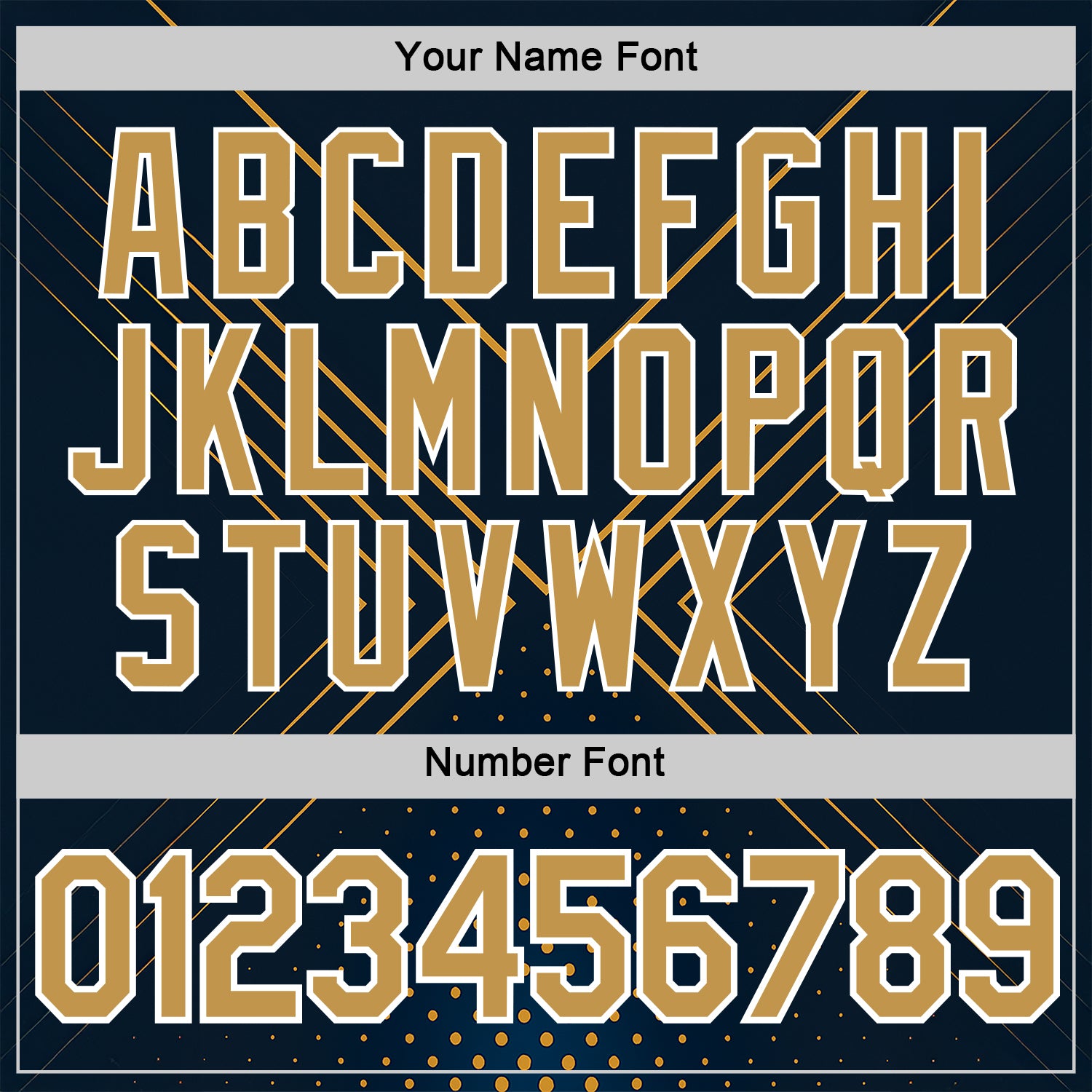 Custom Navy Old Gold-White 3D Pattern Design Geometric Shape Sport Wear Performance T-Shirt
