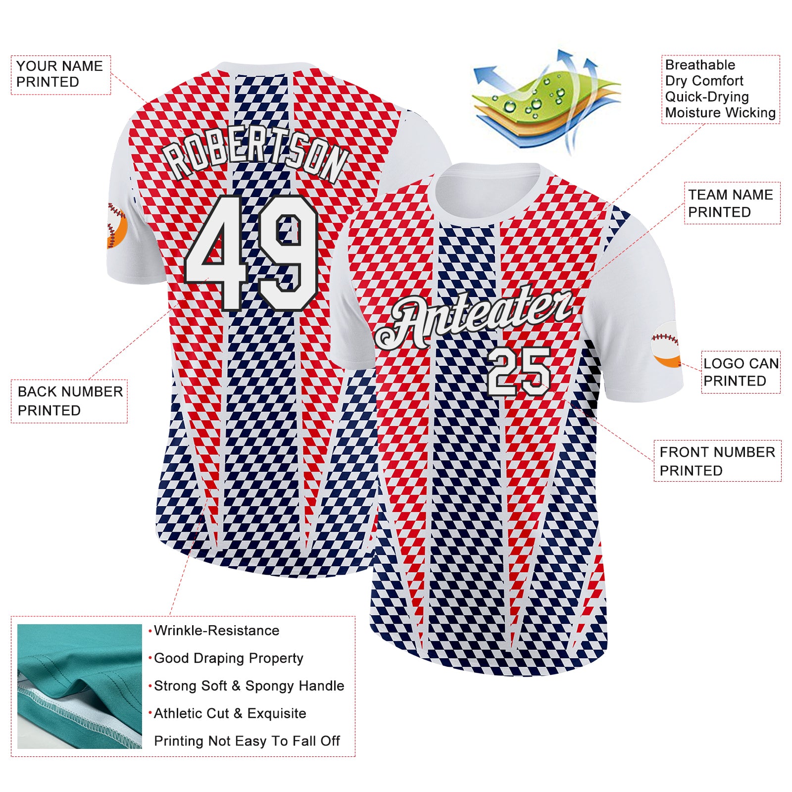 Custom White Black Red-Navy Croatia Plaid Performance T-Shirt