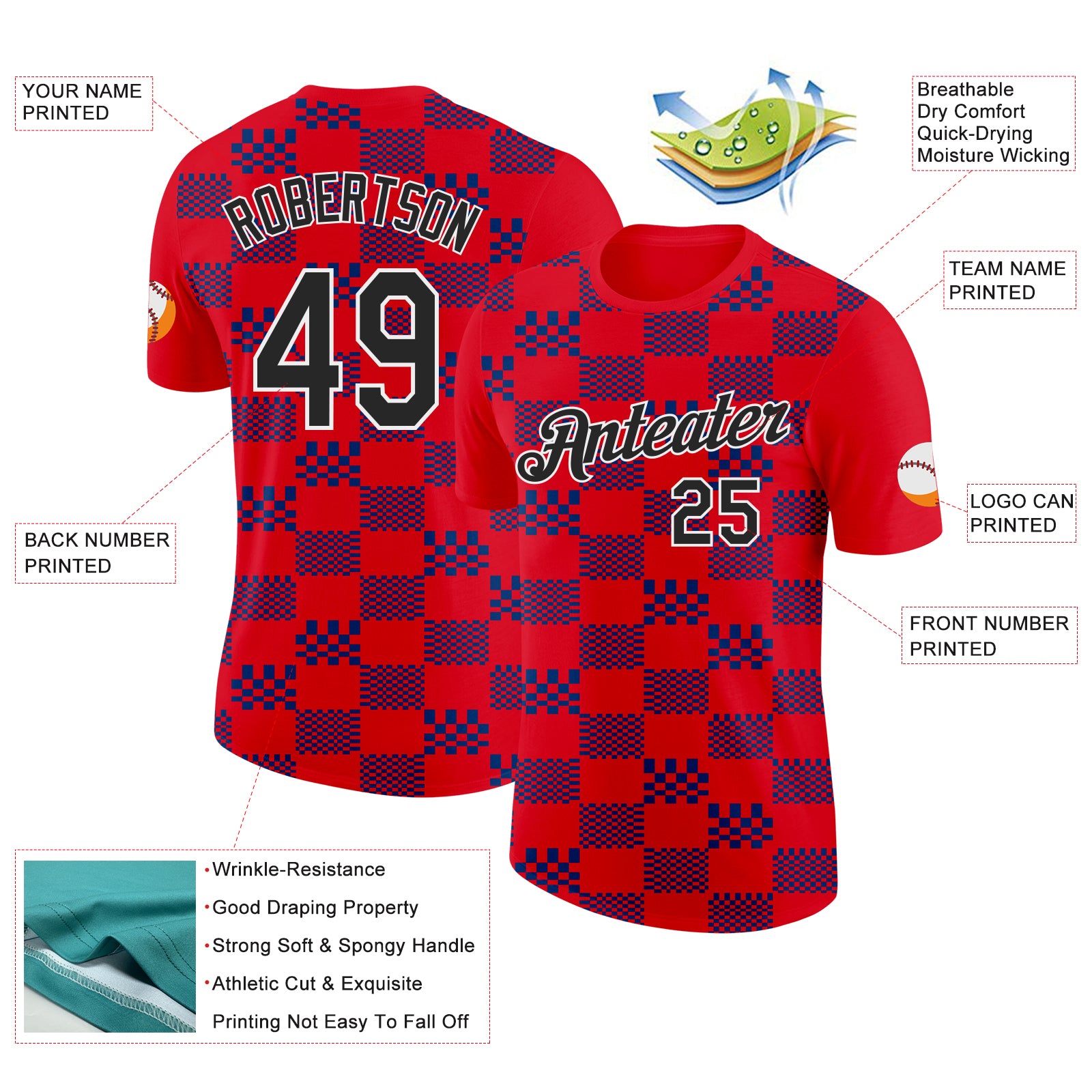 Custom Red Black White-Blue Croatia Plaid Performance T-Shirt