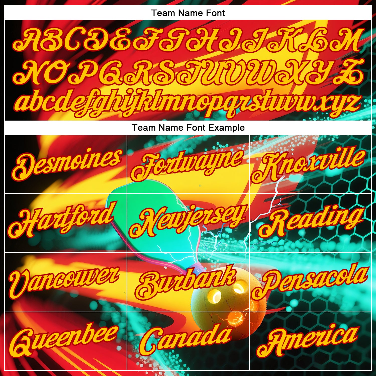 Custom Red Yellow-Blue 3D Pickleball Paddles Balls Performance T-Shirt