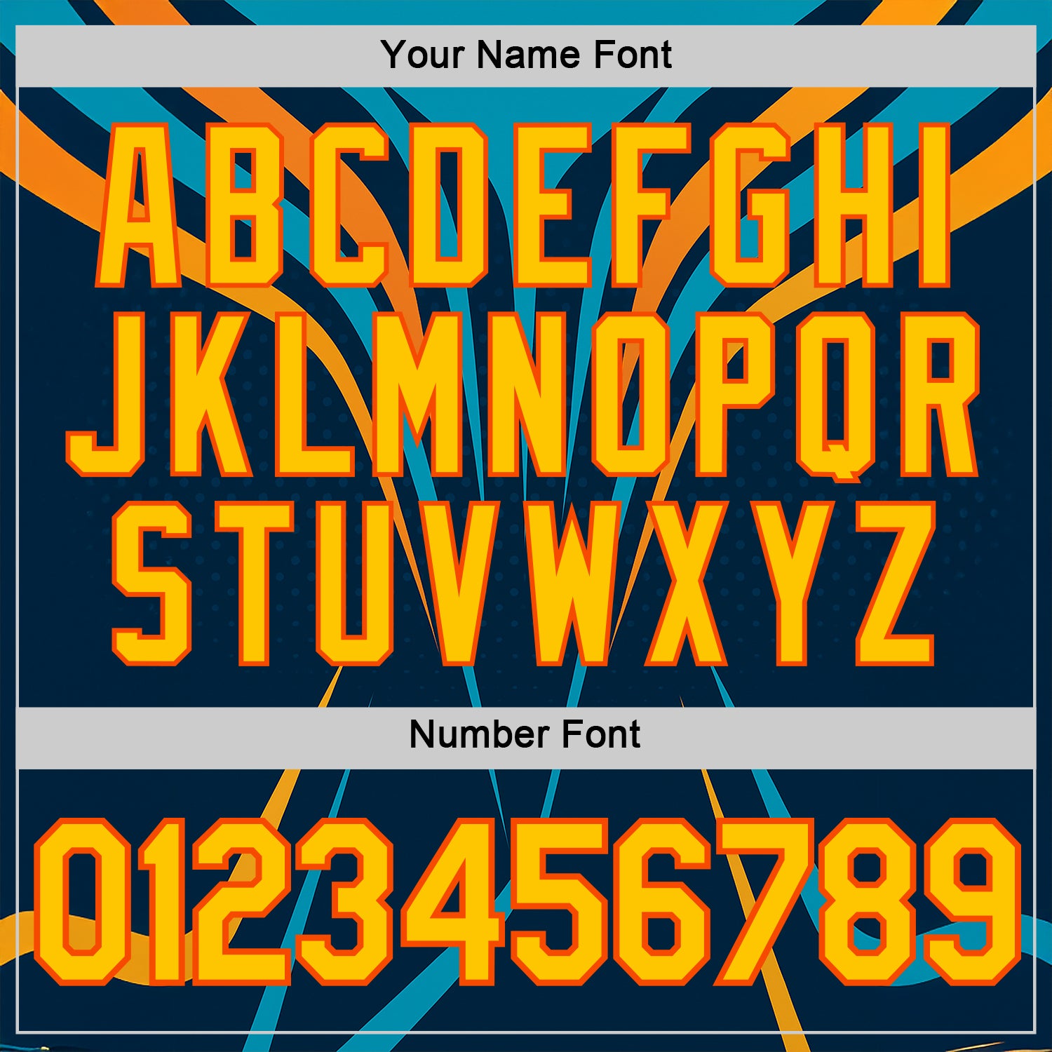 Custom Blue Yellow-Orange 3D Pattern Design Line Sport Wear Performance T-Shirt