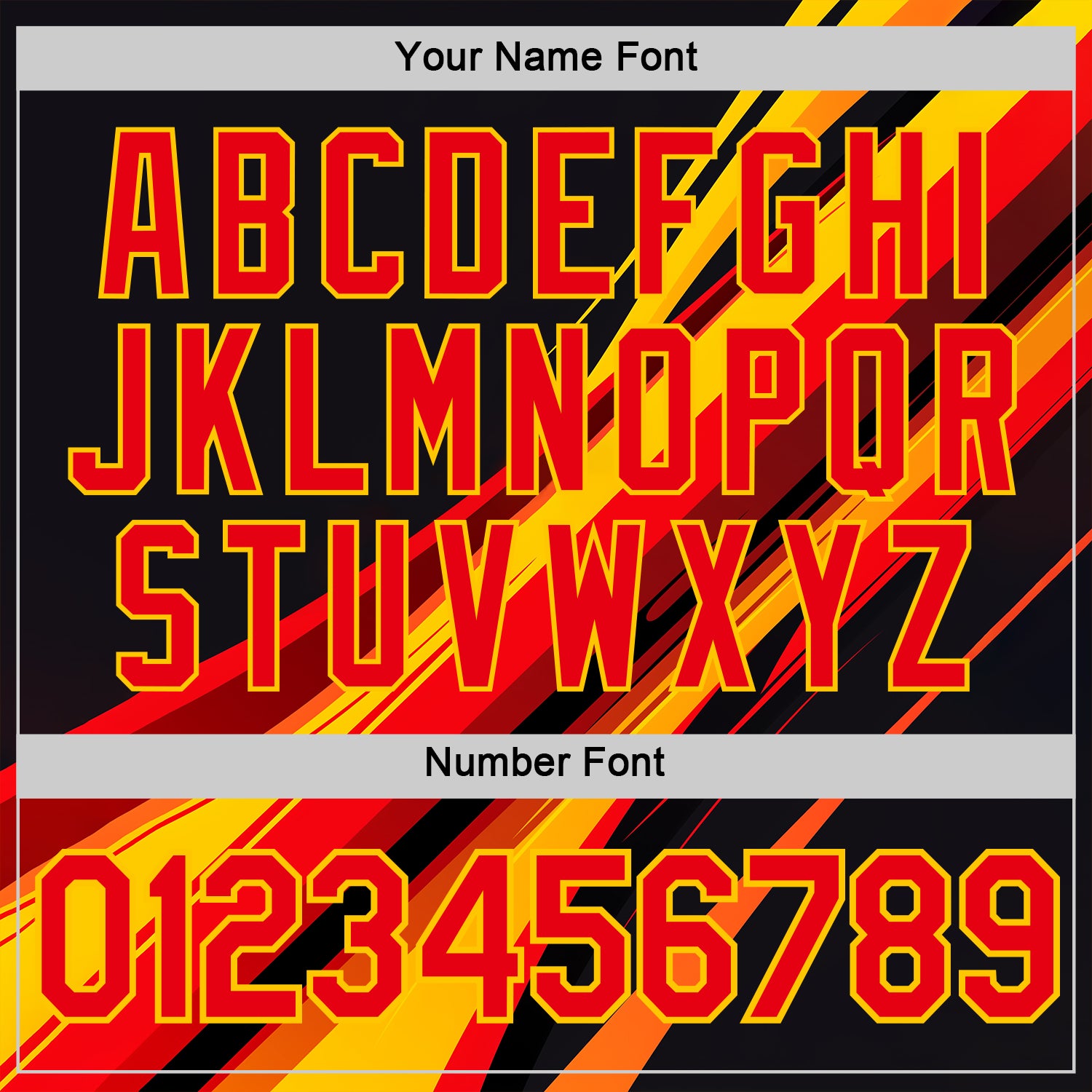 Custom Black Fire Red-Yellow 3D Pattern Design Line Sport Wear Performance T-Shirt