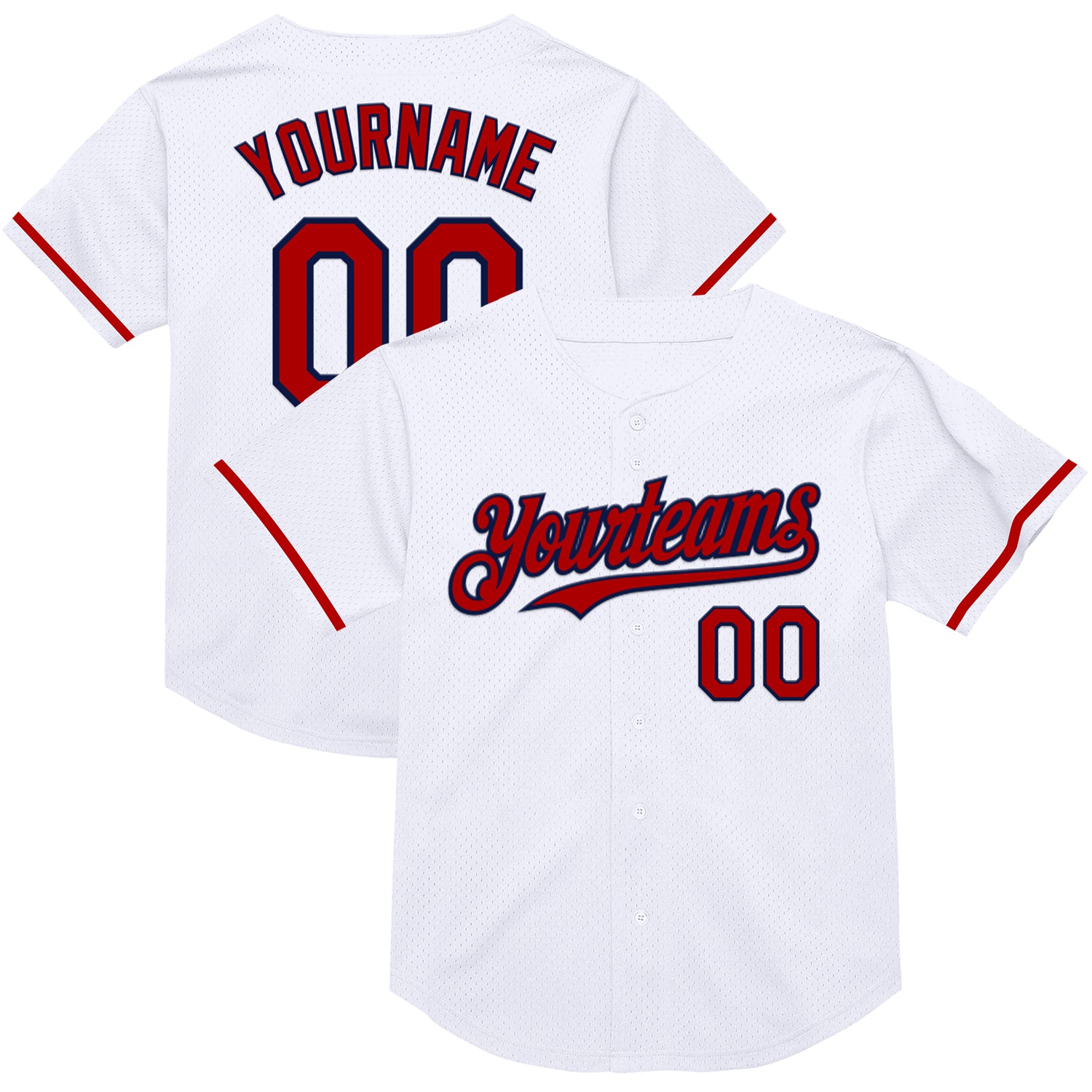 Custom White Red-Navy Mesh Authentic Throwback Baseball Jersey