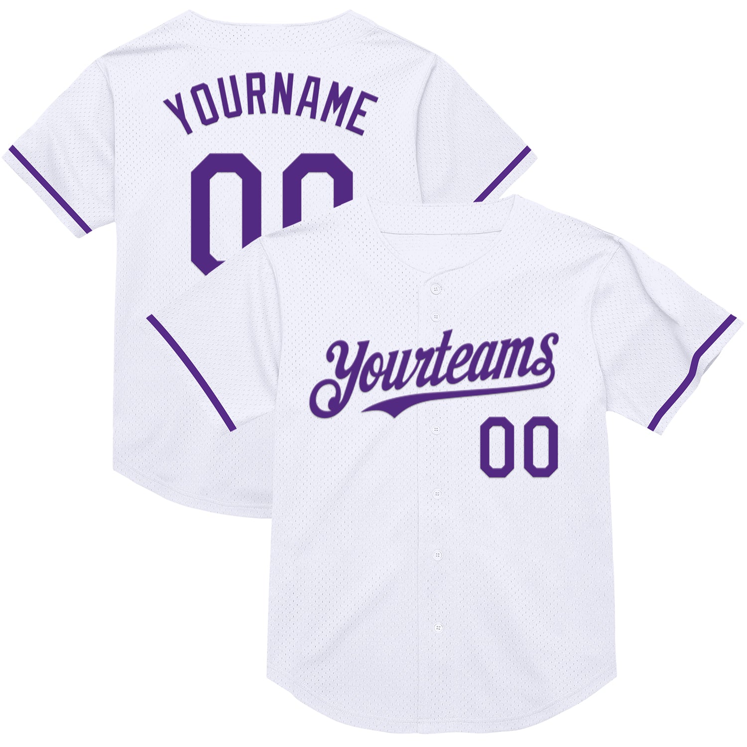 Custom White Purple Mesh Authentic Throwback Baseball Jersey