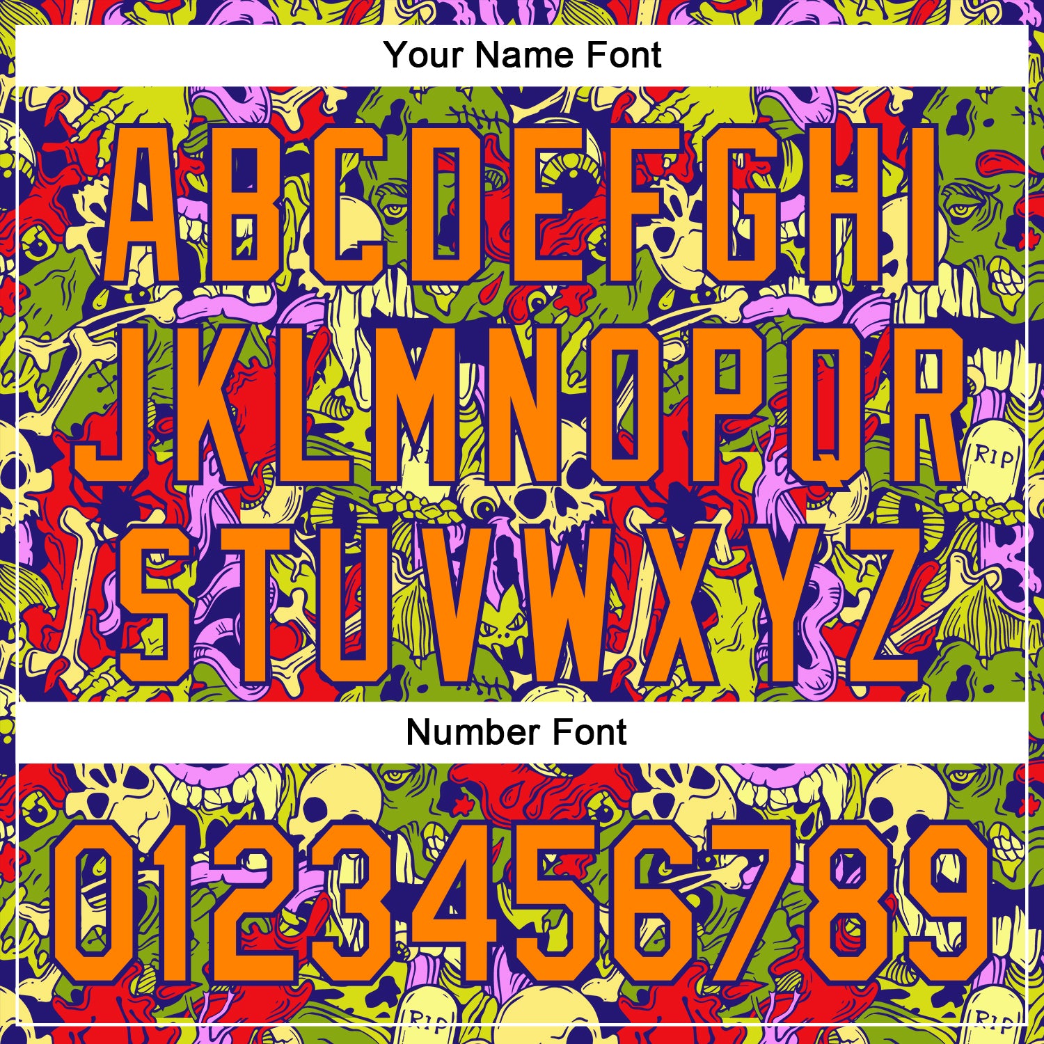 Custom Dark Purple Bay Orange 3D Halloween Skull Doodle Party Costume Ideas Authentic Baseball Jersey