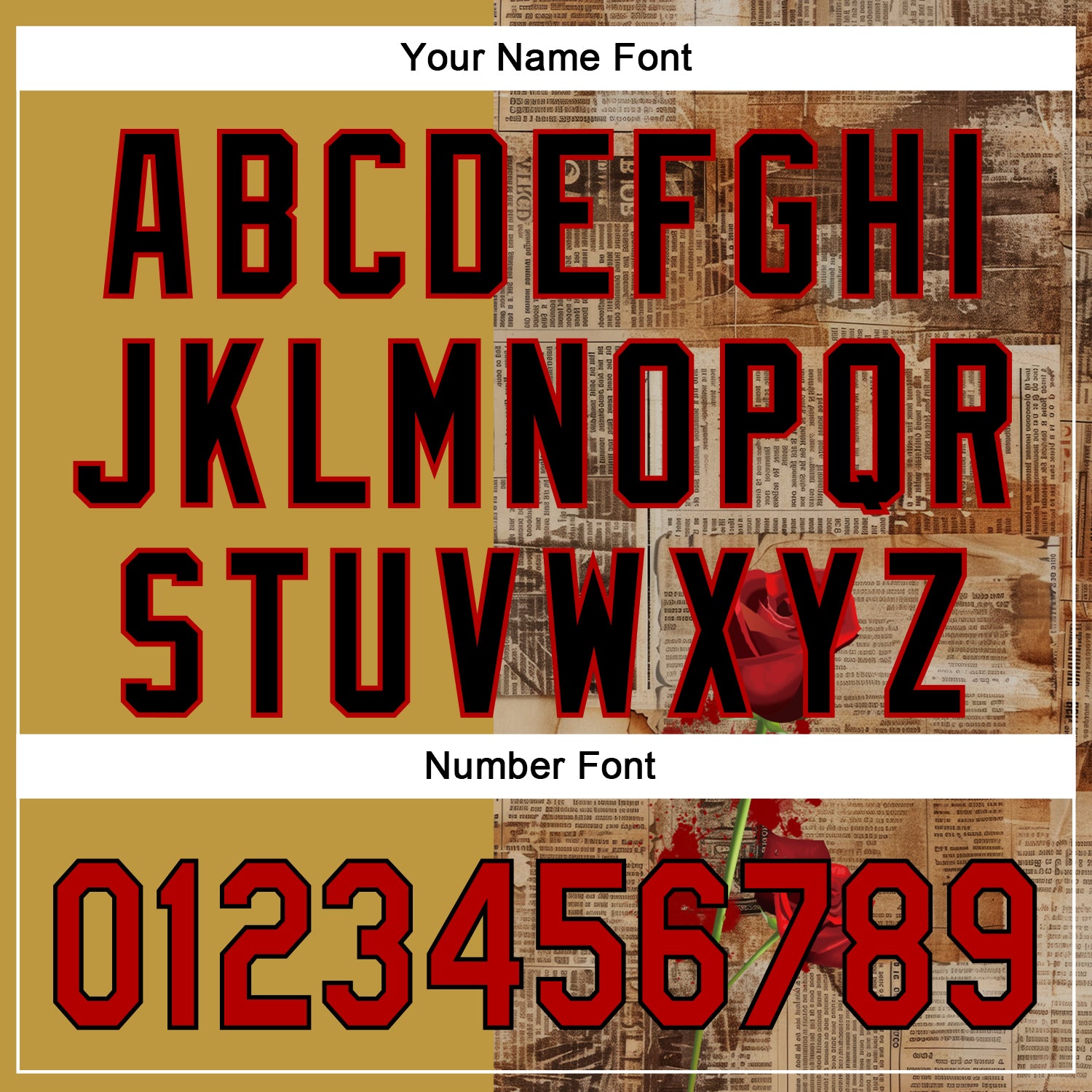 Custom Old Gold Red-Black 3D Pattern Design Gothic Style Rose Authentic Baseball Jersey
