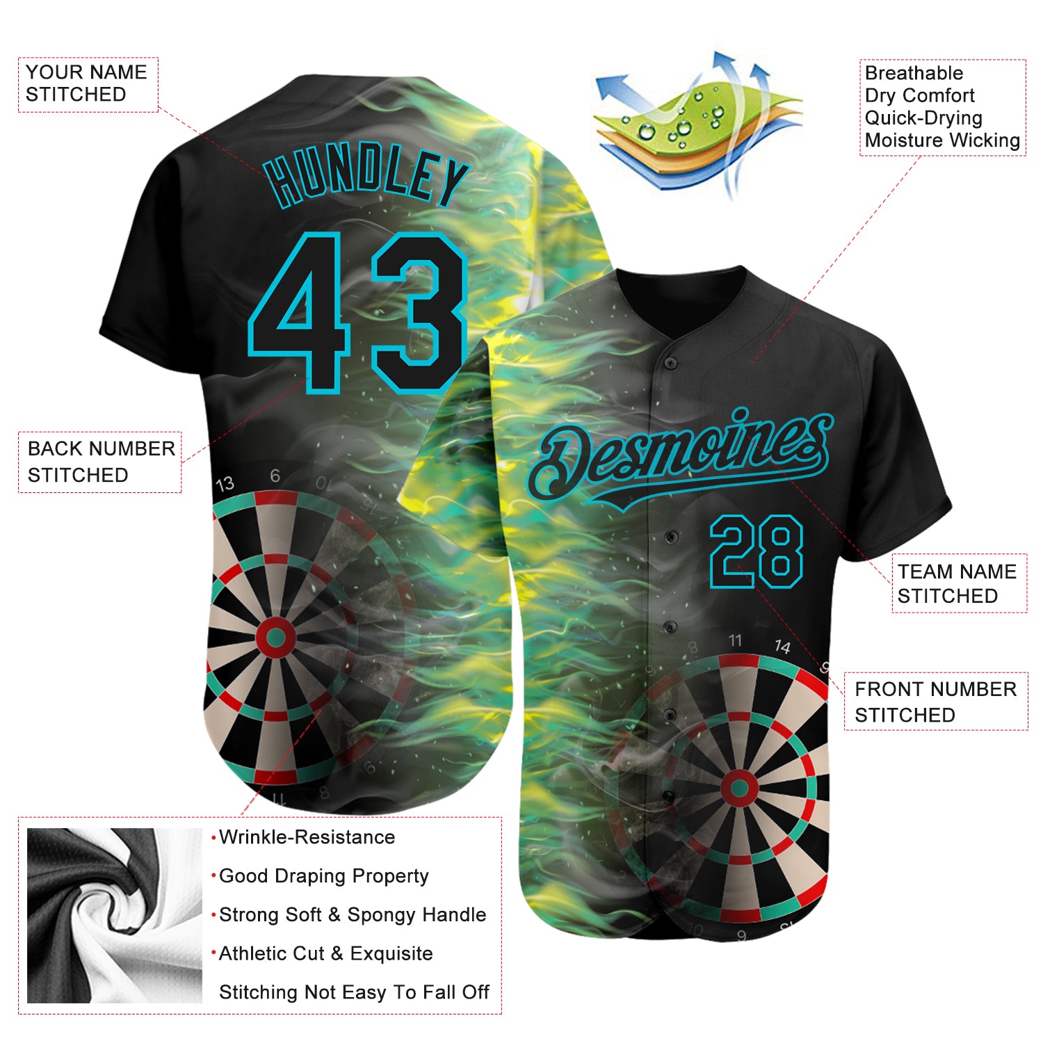 Custom Black Lakes Blue 3D Pattern Design Fiery Dart Board Authentic Baseball Jersey