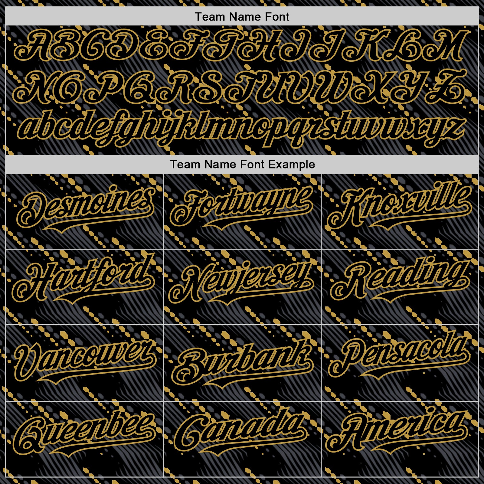 Custom Black Old Gold 3D Pattern Design Slant Lines Authentic Baseball Jersey