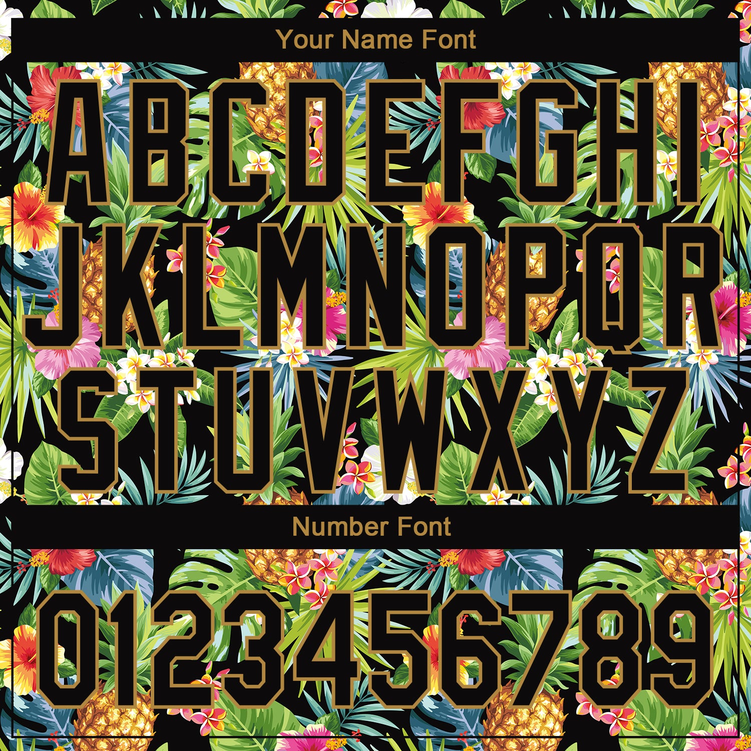 Custom Black Old Gold 3D Pattern Design Hawaii Tropical Pineapples, Palm Leaves And Flowers Authentic Baseball Jersey