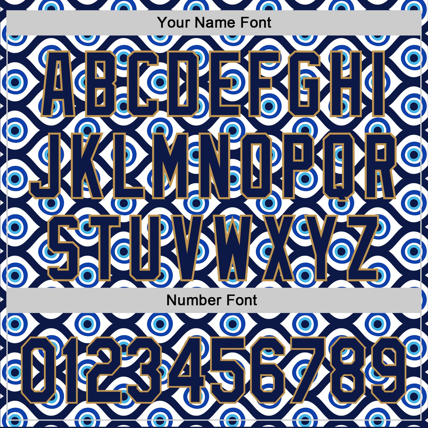 Custom White Navy-Old Gold 3D Pattern Design Evil Eyes Authentic Baseball Jersey