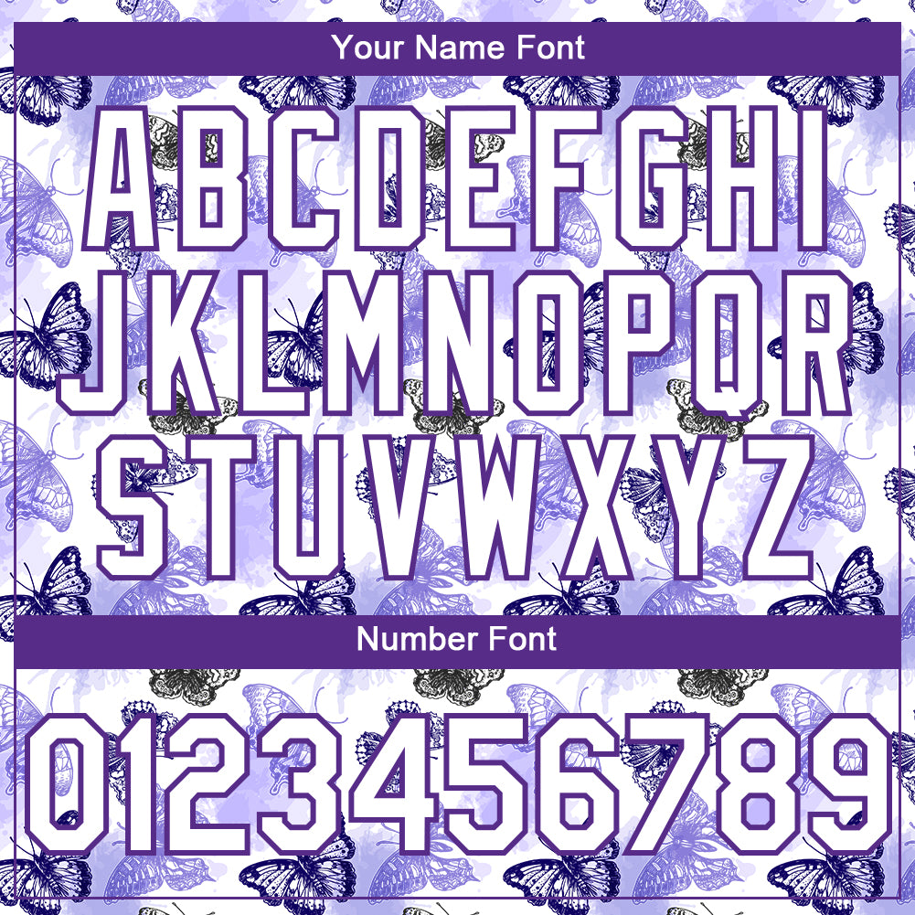 Custom White Purple 3D Pattern Design Animal Butterfly Authentic Baseball Jersey