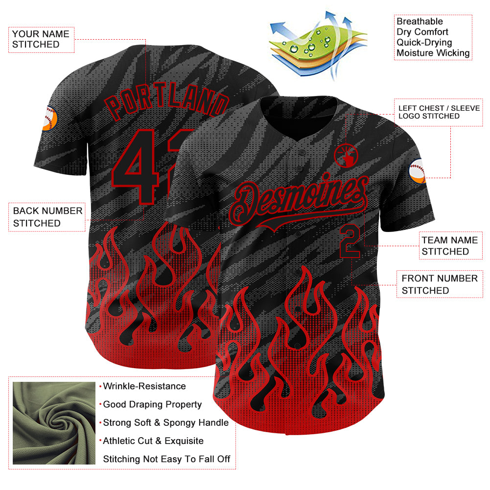 Custom Black Red 3D Pattern Design Flame Authentic Baseball Jersey