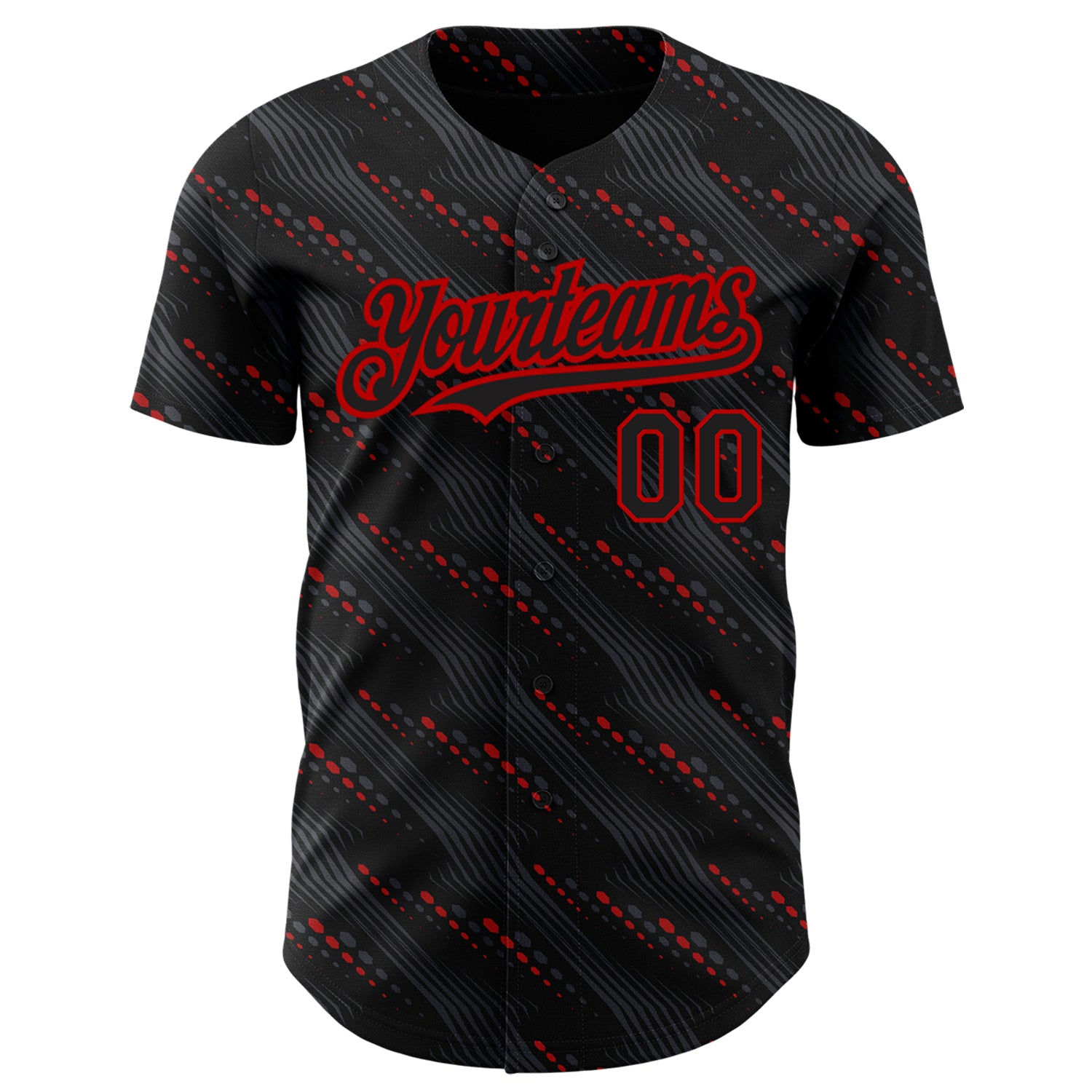 Custom Black Red 3D Pattern Design Slant Lines Authentic Baseball Jersey