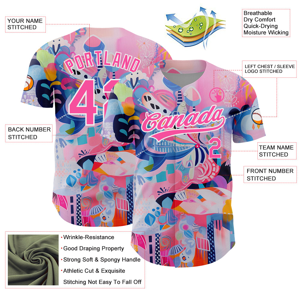 Custom Pink White 3D Pattern Design Abstract Painting Authentic Baseball Jersey