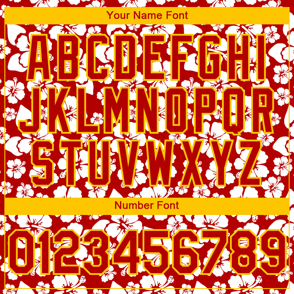 Custom Red Yellow 3D Pattern Design Tropical Hawaii Flower Authentic Baseball Jersey